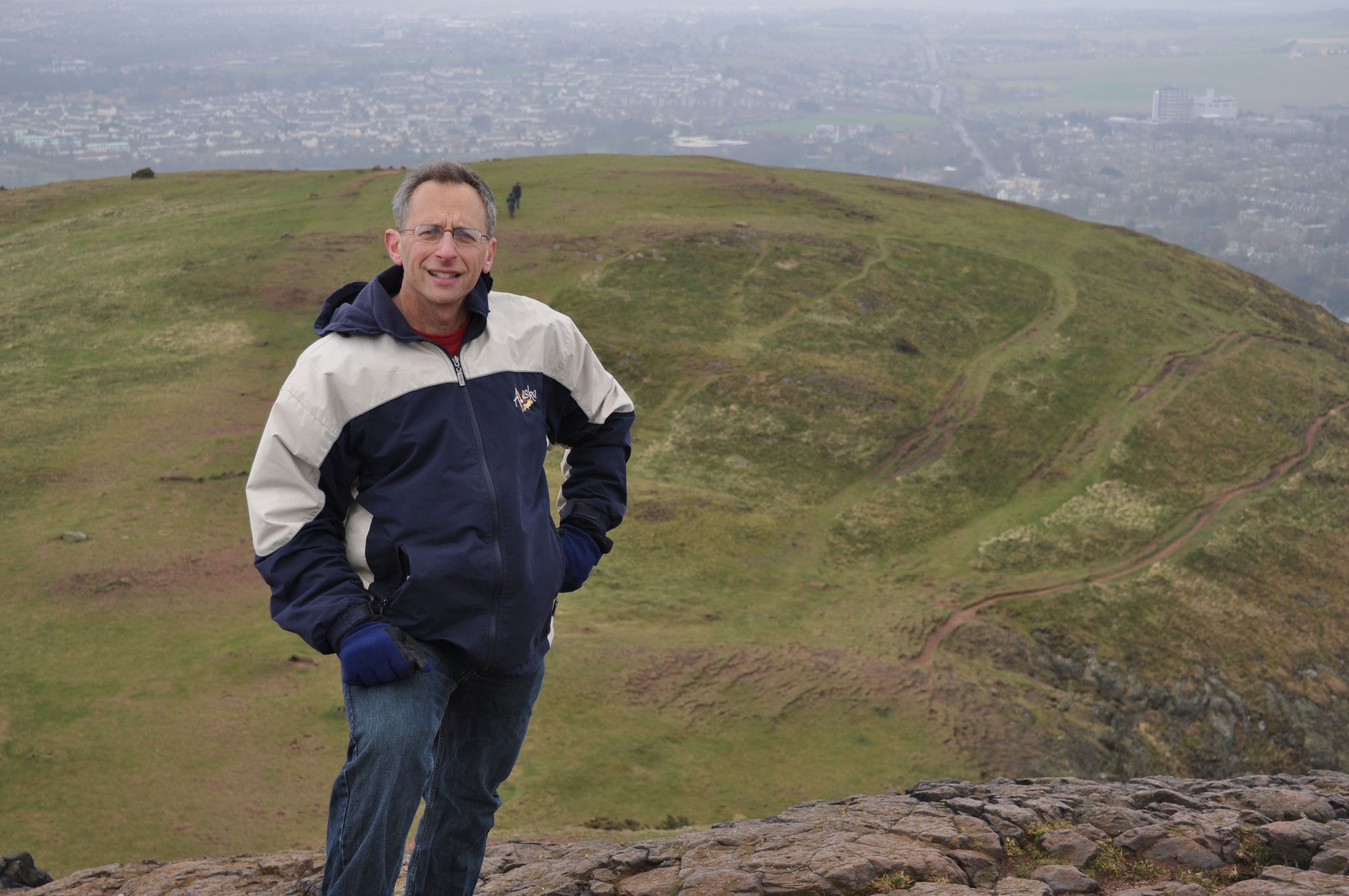 Arthur’s Seat is a volcanic hill (roughly 800 feet high) overlooking Edinburgh, across the Queen’s Road from Holyrood Palace and the new, crazy-quilt Scottish Parliament building.  There are two ways to the summit:  a precipitous trek up the front, or a gentler but longer climb up the back.  I inadvertently took the front approach but heartily (physically and literally) recommend the back, if you can tolerate the ego-crushing impact of runners breezing past.  Either way, the ascent is rewarded by views extending over the city and its surroundings, a sense of accomplishment, and the feeling one has earned one’s whisky (spelled without the “e,” which is reserved for the Irish variety).