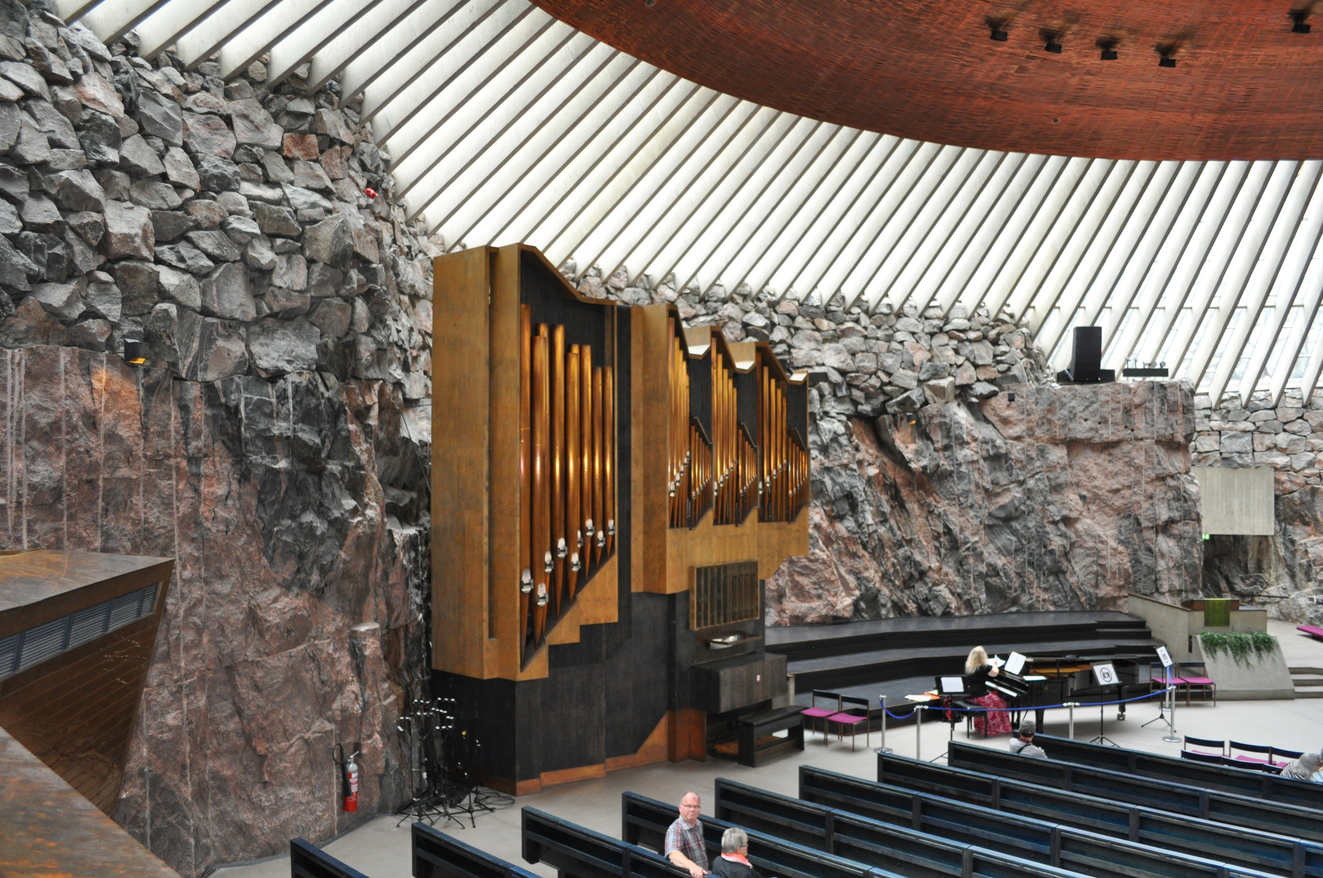 The Rock Church (a/k/a Temppeliaukion Kirkkula), our second stop, was a bit disappointing. From the outside it’s just a rock outcropping with a nondescript dome and glass doors. The interior is spacious and serene, with wonderful acoustics (there was a pianist playing classical music during our visit).