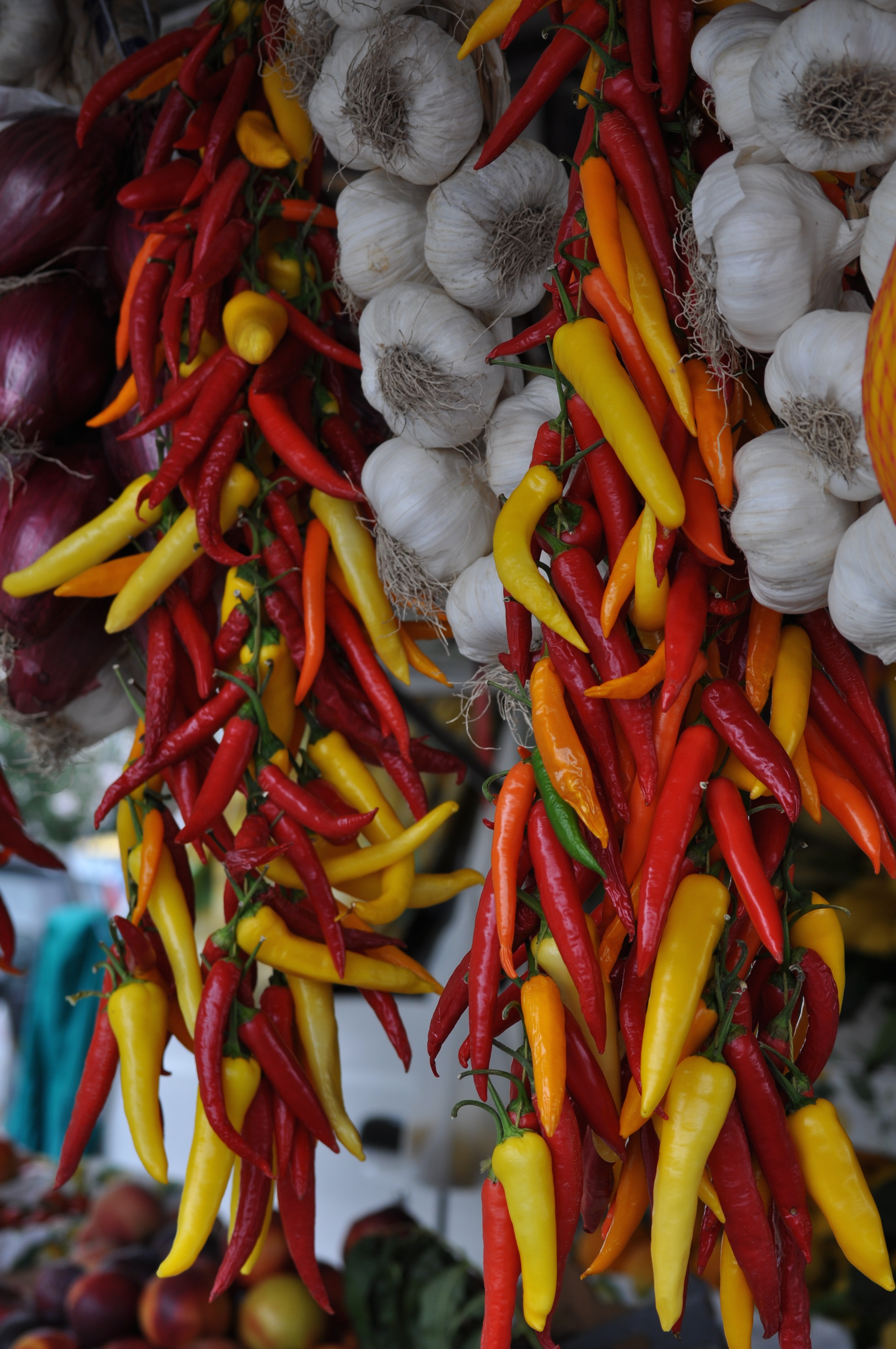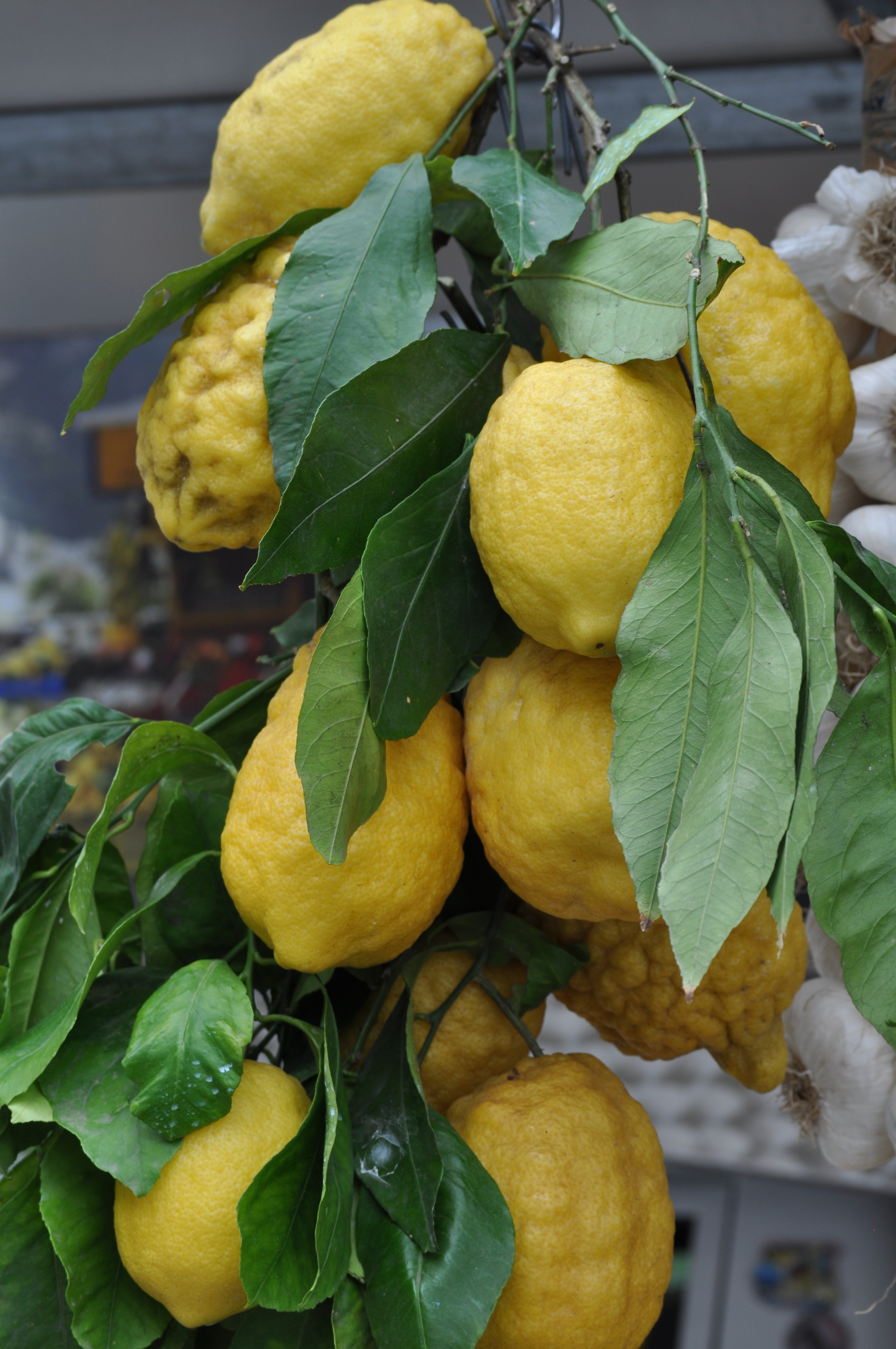 On the way to Positano, we stopped twice: first to take pictures at an overlook offering beautiful views of Sorrento and the Bay of Naples, and second at a produce stand featuring peppers, garlic, and enormous Amalfi lemons, which are perhaps three times larger than their American cousins.