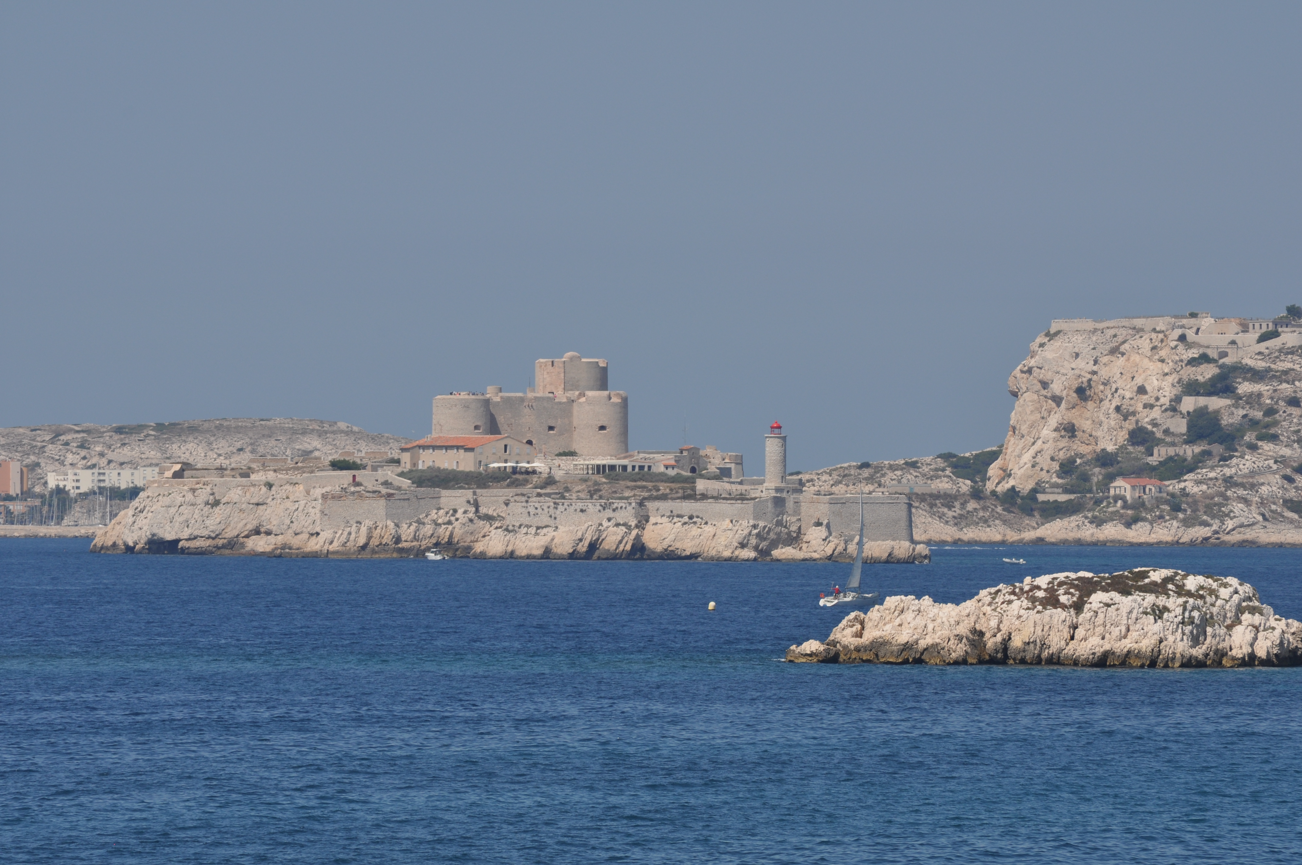Our bus crept around the U-shaped Old Port, passing a fish market and hundreds of sail boats. There are several islands in Marseilles Bay; the fortress made famous in The Count of Monte Cristo hulks over one of them.