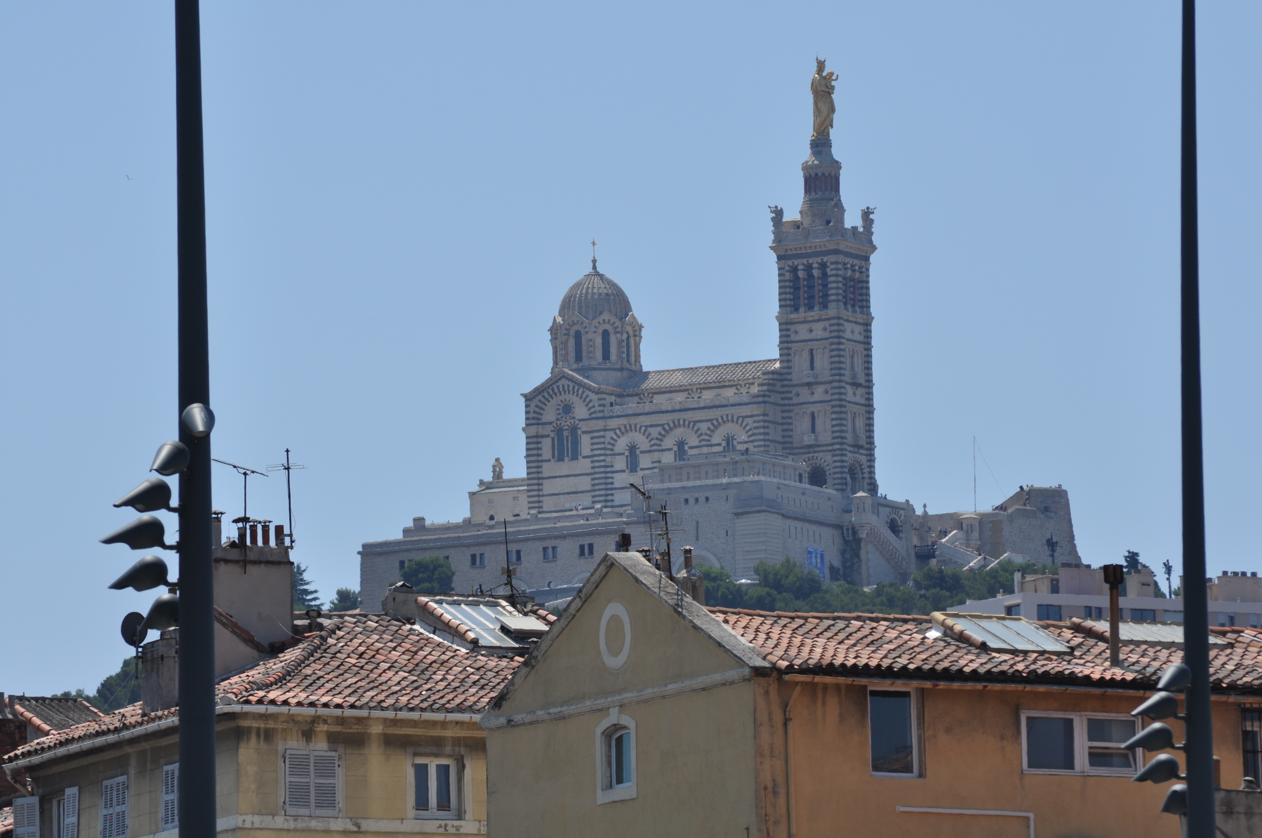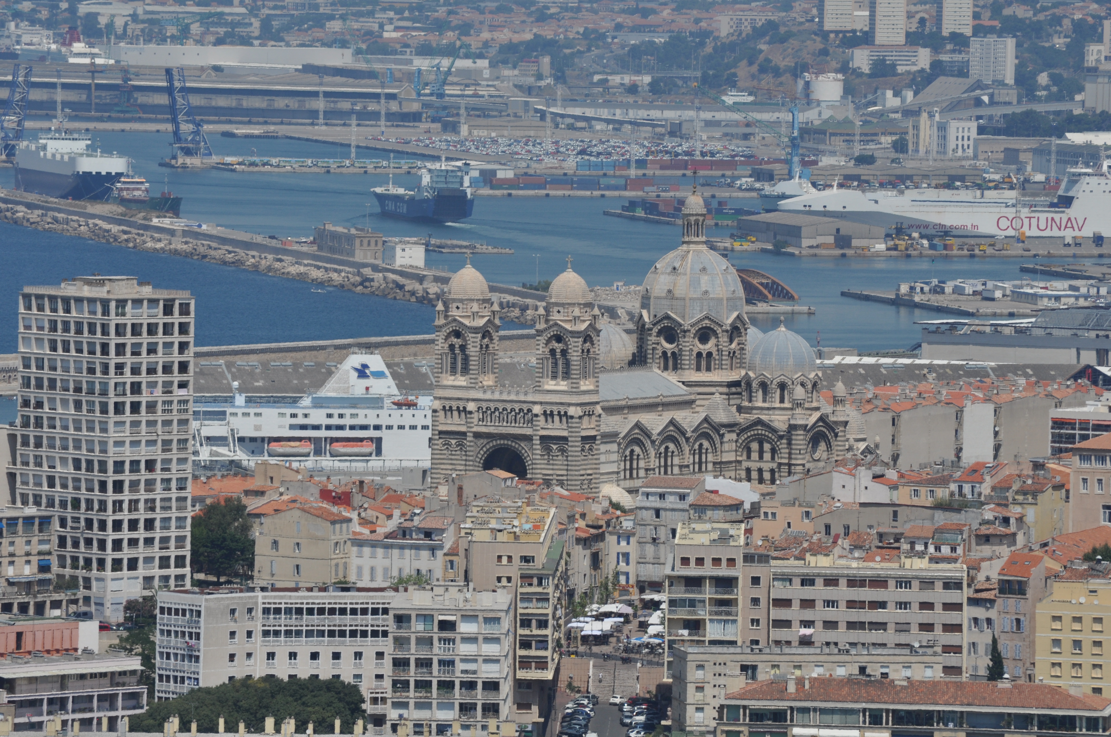 Toward the old port, there’s a beautiful vista of the twin forts guarding the harbor (Bas Fort Saint-Nicholas and Fort Saint-Jean) and a splendid Byzantine-style cathedral beyond Fort Saint-Jean (Cathedrale de la Major).