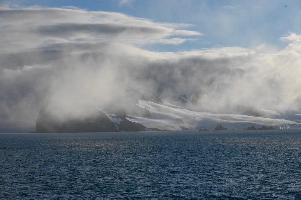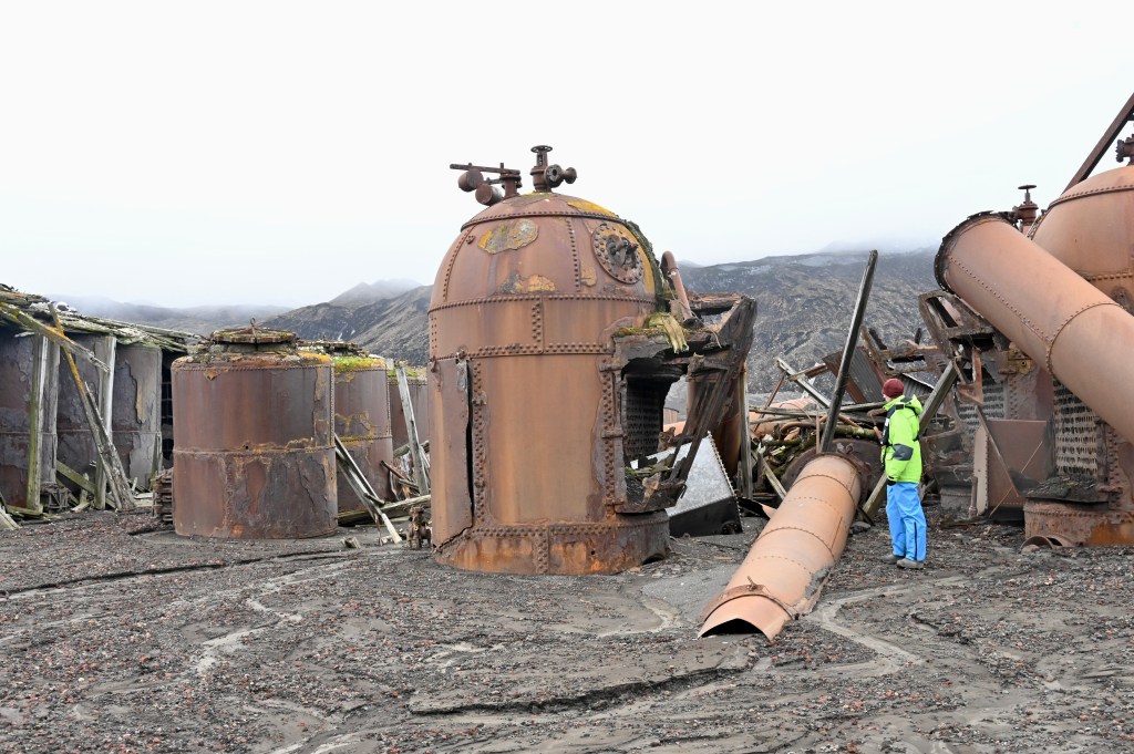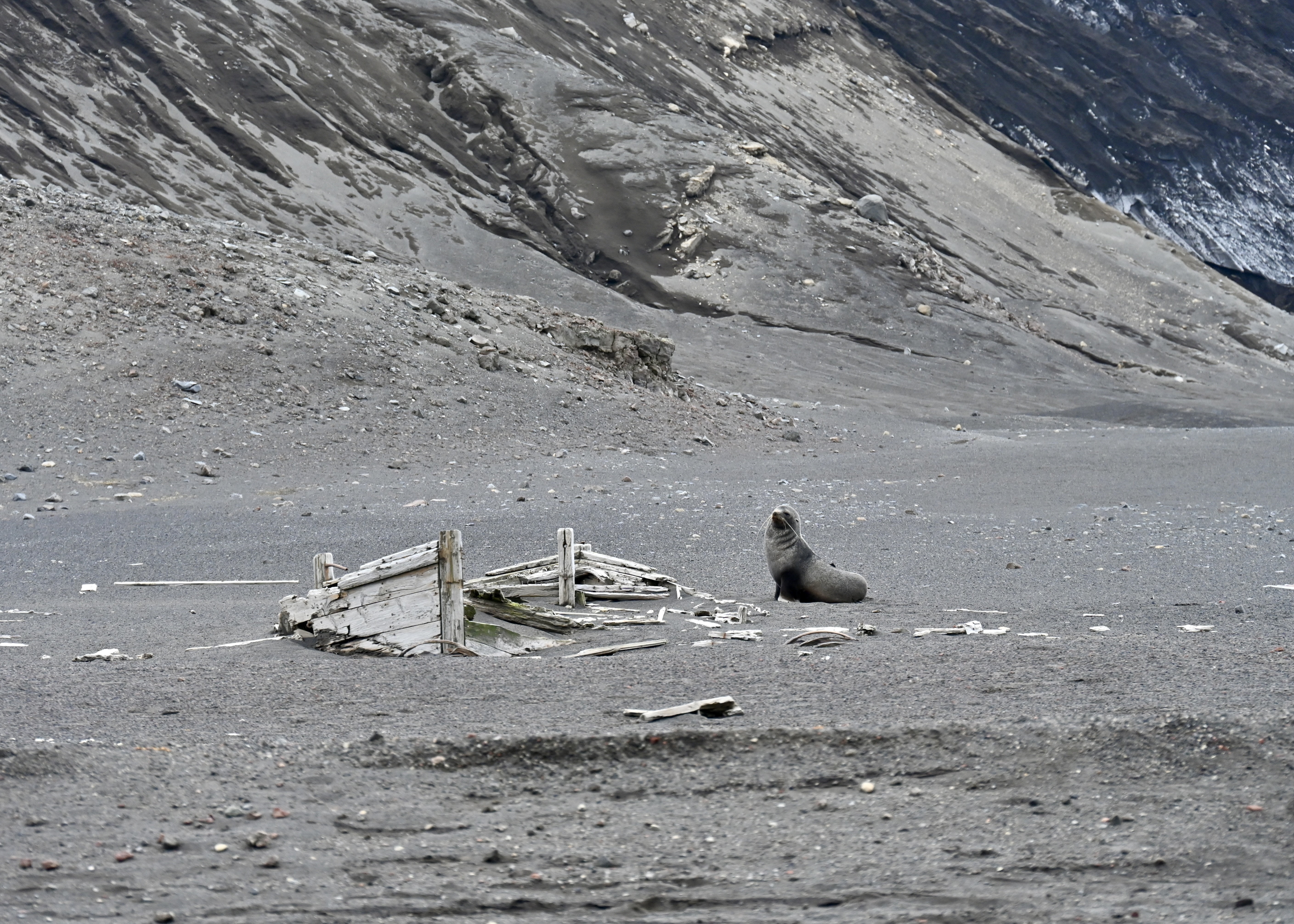 Bleak, sulphurous, haunted. Deception Island is an active volcano with an ocean-filled caldera. Although considered part of Antarctica, Deception Island shares little with the continent. Where the continent has sheer, jagged, snow-covered cliffs plunging into the ocean, Deception Island is ringed with low, bare hills leading down to mud flats and gravel. Where the air on the continent is pristine, on Deception Island a sulfurous mist hugs the shore. And where the continent has no signs of human exploitation (other than the research bases), Deception Island was once a whaling center, whose storage tanks, administrative buildings, and processing facilities lie abandoned and collapsing along the shore. Between the dilapidated buildings and the sulfurous mist, it’s a perfect setting for a ghost story.
