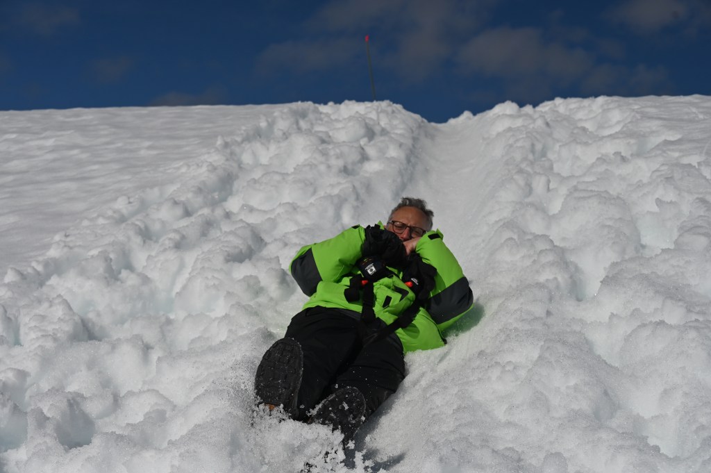 Then came the fun: someone decided that sliding down the other side was the way to go, and soon all of us senior citizens were little kids again! (Note to self: next time make sure your underlayer is tucked securely into your pants so when you slide down you don’t get snow in any sensitive places.) We checked out an abandoned research station and then soaked up the island’s beauty.