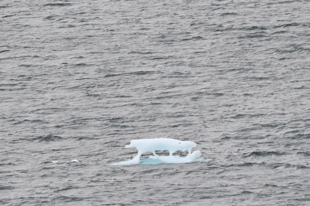 The one drawback to hanging out in a penguin colony is the smell: imagine a zoo on a hot day combined with a soupcon of cat piss. Who cares? We saw penguins porpoising (swimming fast, launching into the air, swimming underwater, then popping up again). We saw penguins sitting on nests, hopping on rocks, waddling across ice and snow (with occasional face plants), and screaming at Skuas (predatory birds) that got too close. Their normal vocalizations are almost donkey-like, but with a French accent – hee haw with a guttural effect on the “haw.” They are curious animals; several tottered toward our group to take a closer look.