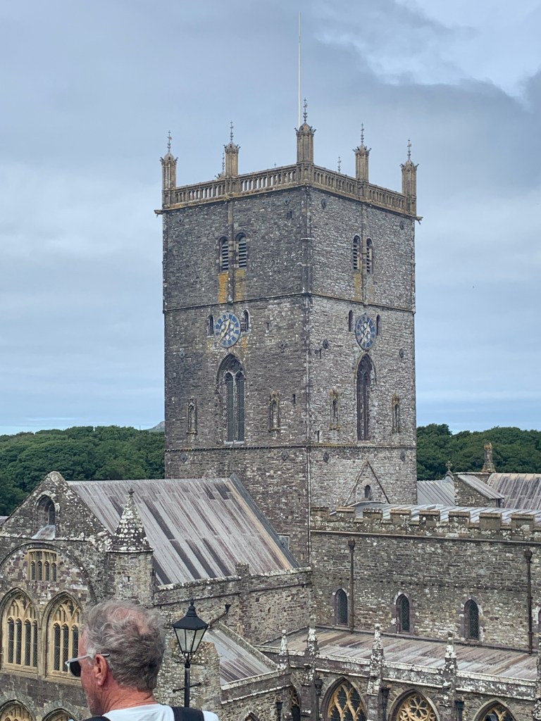 The walk ended in St. Davids, home to a 13th century cathedral and a wonderful restaurant (St. Davids Gin and Kitchen) where I downed a scrumptious lunch, a dessert of affogato (ice cream drenched in espresso), and a glass of seaweed-distilled gin, which was spiritually wonderful in a literal sense and bore not a hint of algal overtones. Then out to walk among the locals, all of whom seemed to be attached to at least one dog, bringing further joy to my day.