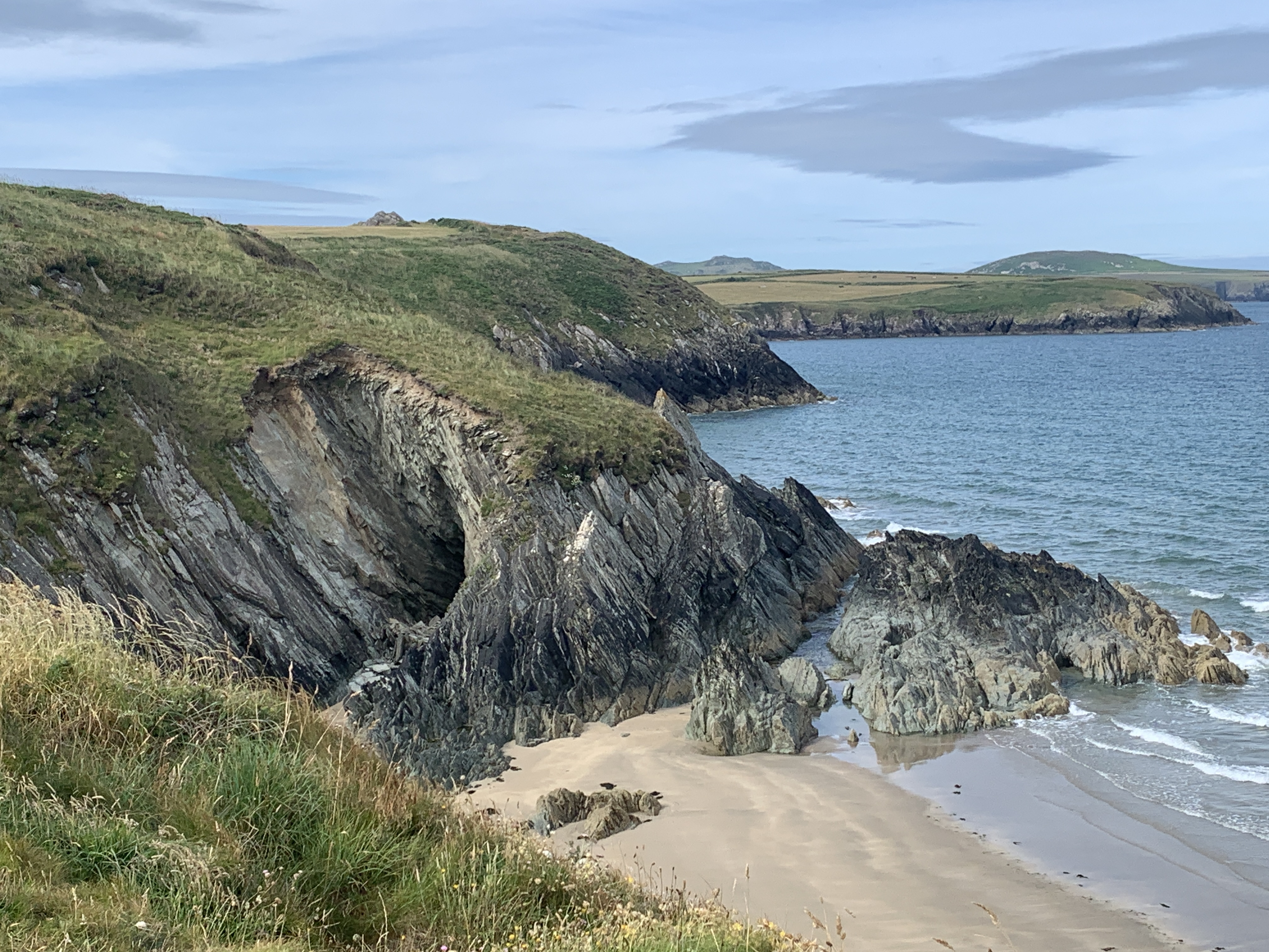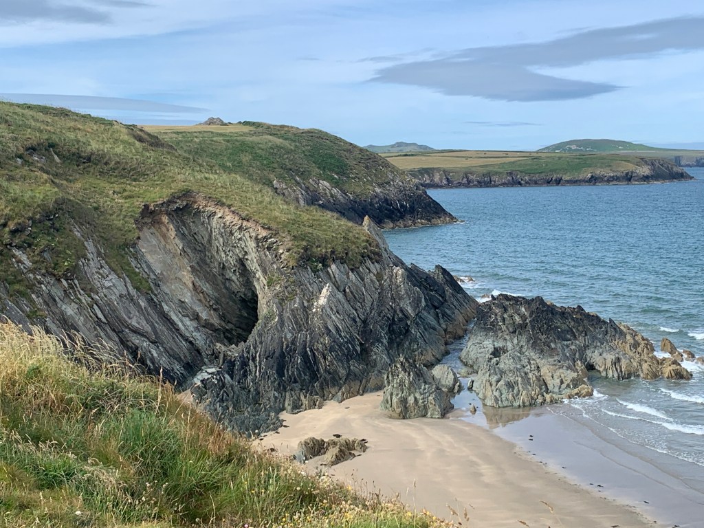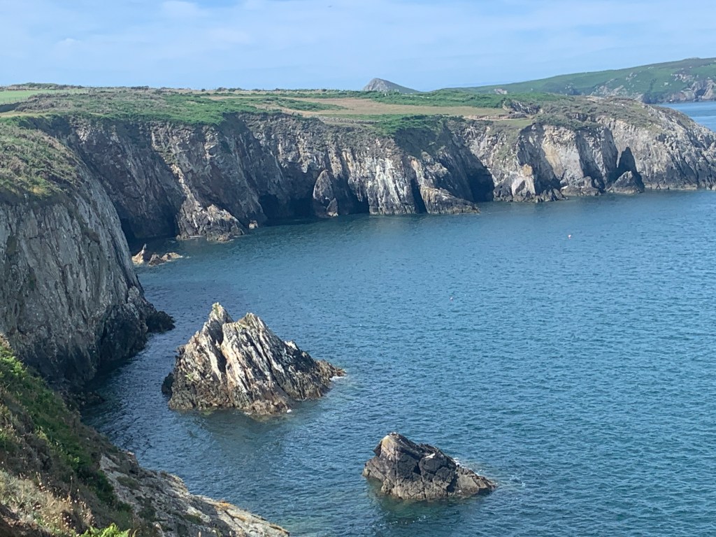 Our hike today hugged the Pembrokeshire Coast. For seven miles, we walked alongside turquoise water, cave-pocked cliffs, swooping swifts, and vibrant wildflowers. Add in partly sunny skies, a light breeze, and Goldilocks temperatures (not too hot, not too cold), and today’s hike was physically and spiritually exhilarating.