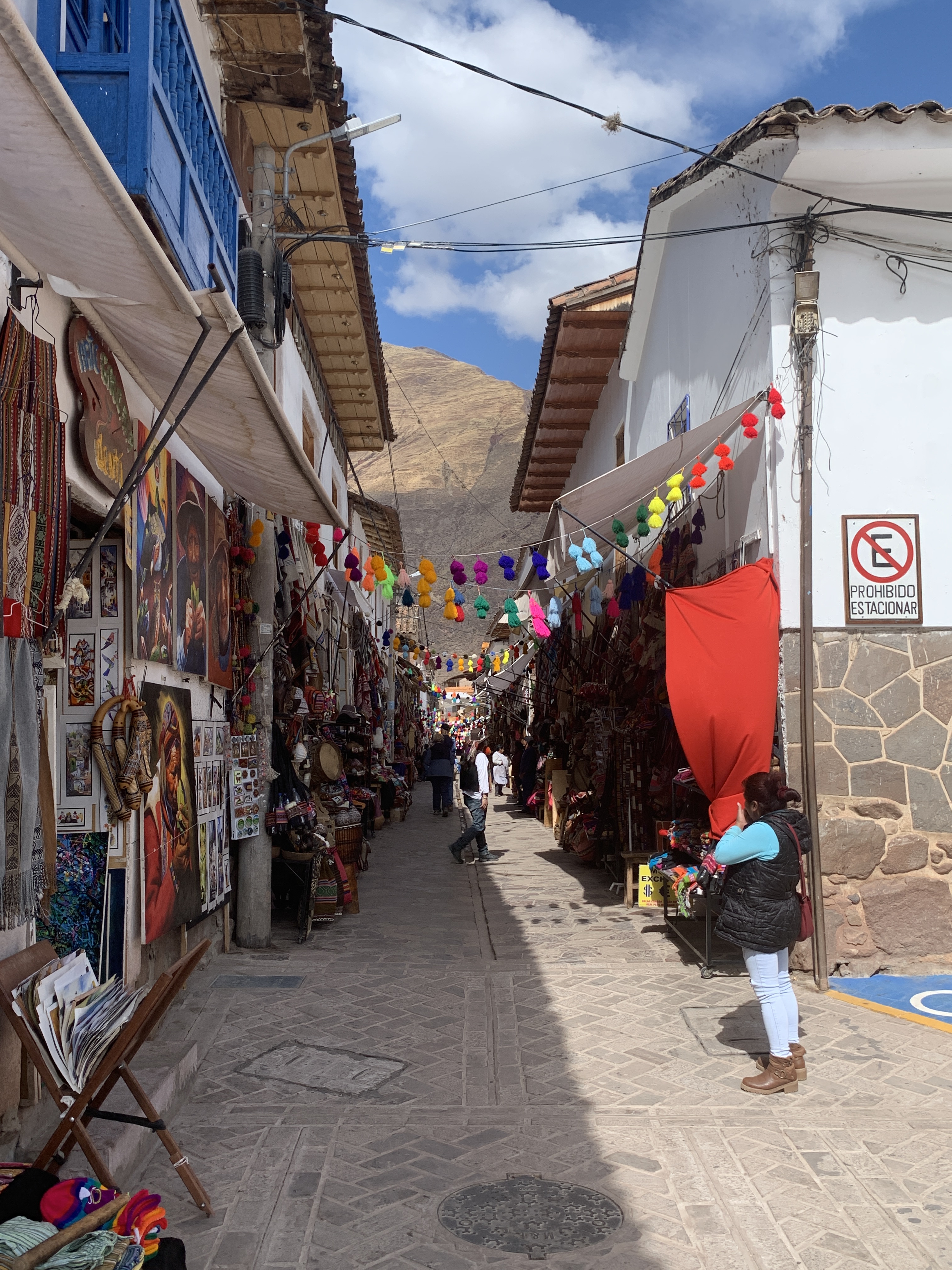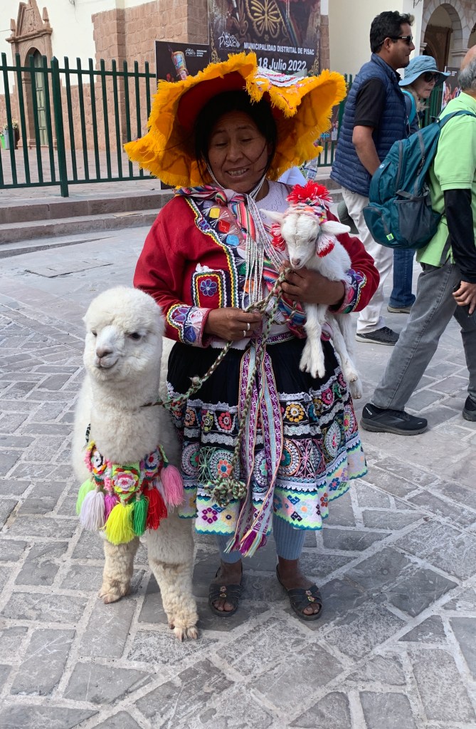 Pisac centers on a large plaza with narrow alleys radiating from each corner. Along these lanes, dozens of artisans ply their wares. Colorful alpaca wool blankets and clothing wave in the breeze and silver and gold jewelry gleam in the afternoon sun. Adding to the charm, women and little girls carry outrageously cute baby alpacas, posing for a picture in exchange for a dollar or two.