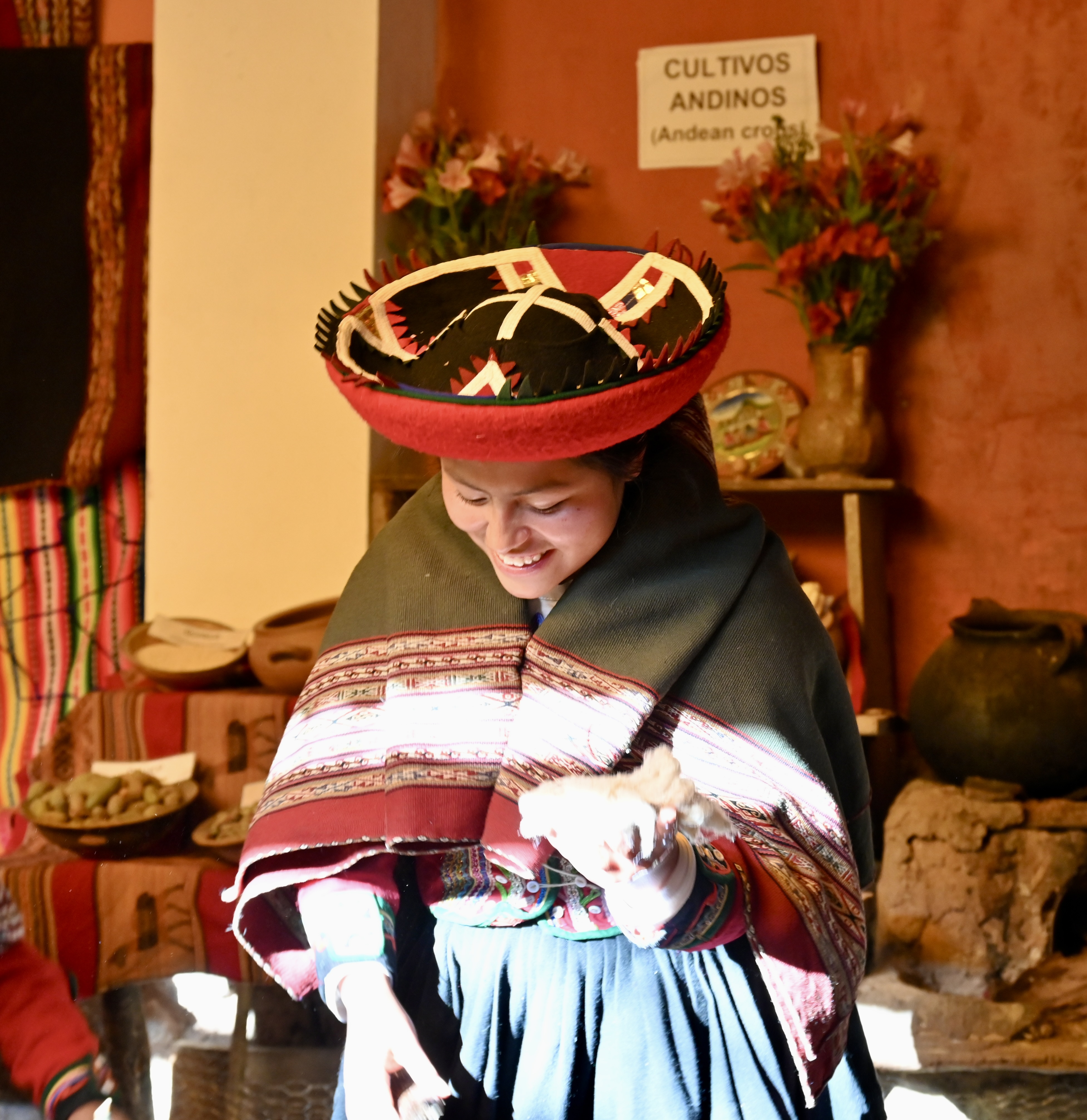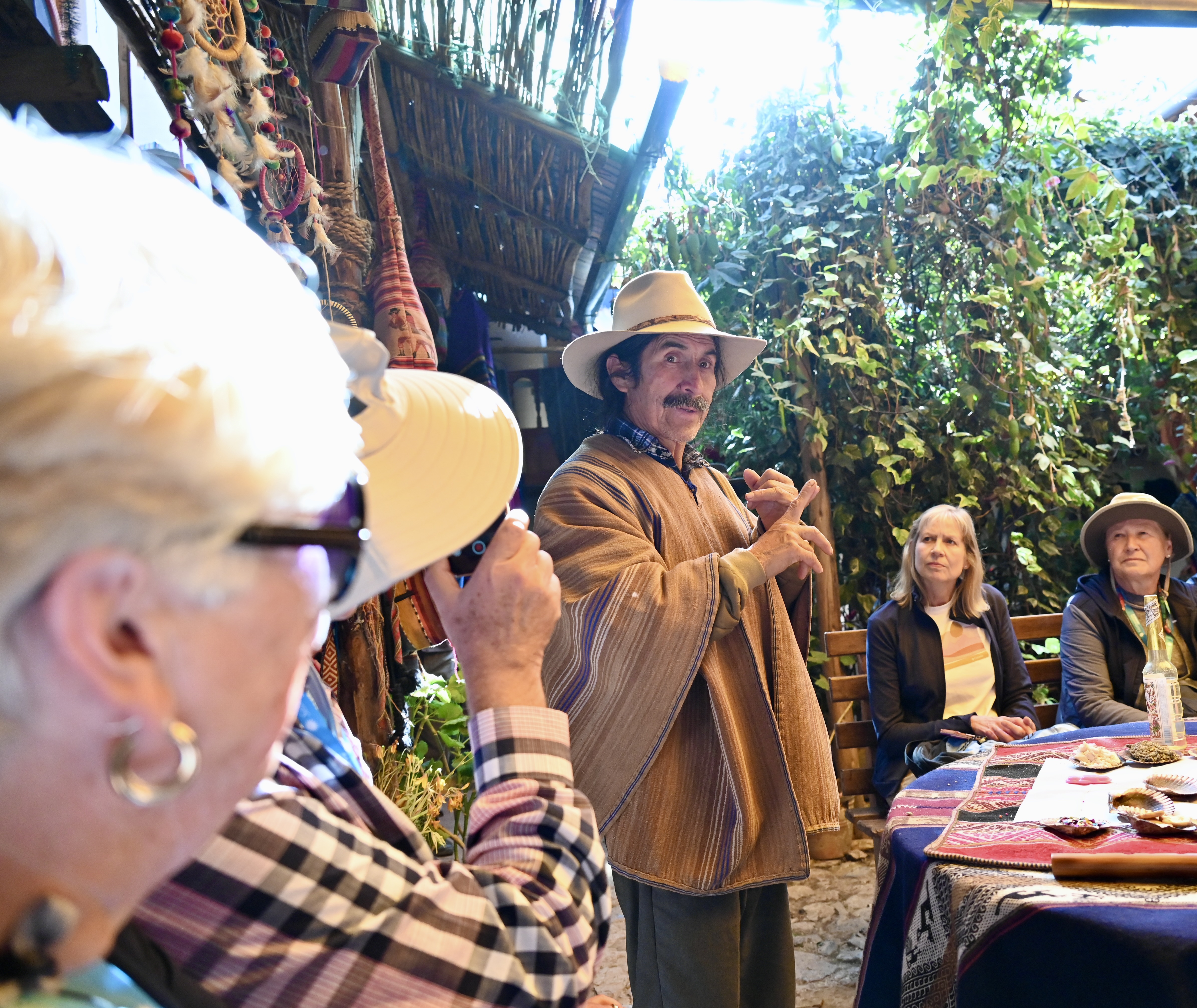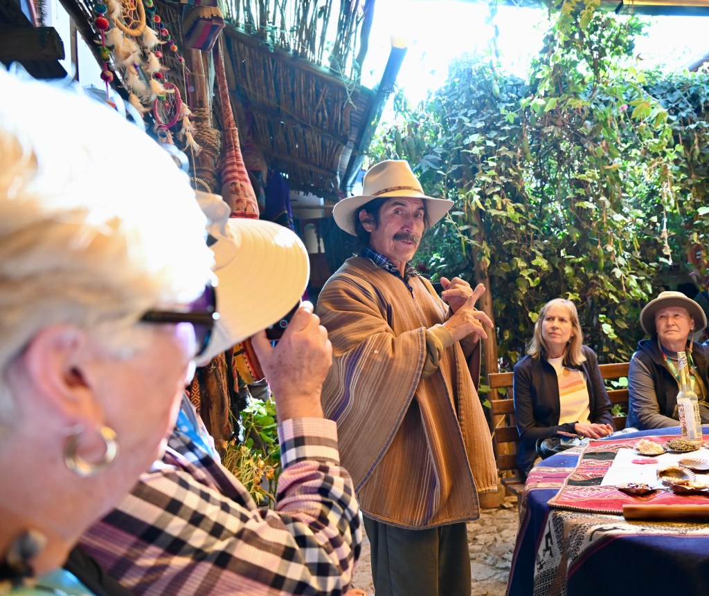 What a wonderful day in the Sacred Valley of the Incas! It began with another terrific lecture from Bill, the archaeology expert on the trip. We then drove to the Incan ruins at Ollantataytambo, which is second only to Machu Picchu in size and majesty. Following a delicious lunch, we were treated to an Offering to Mother Earth performed by a shaman and a fascinating demonstration of weaving techniques.