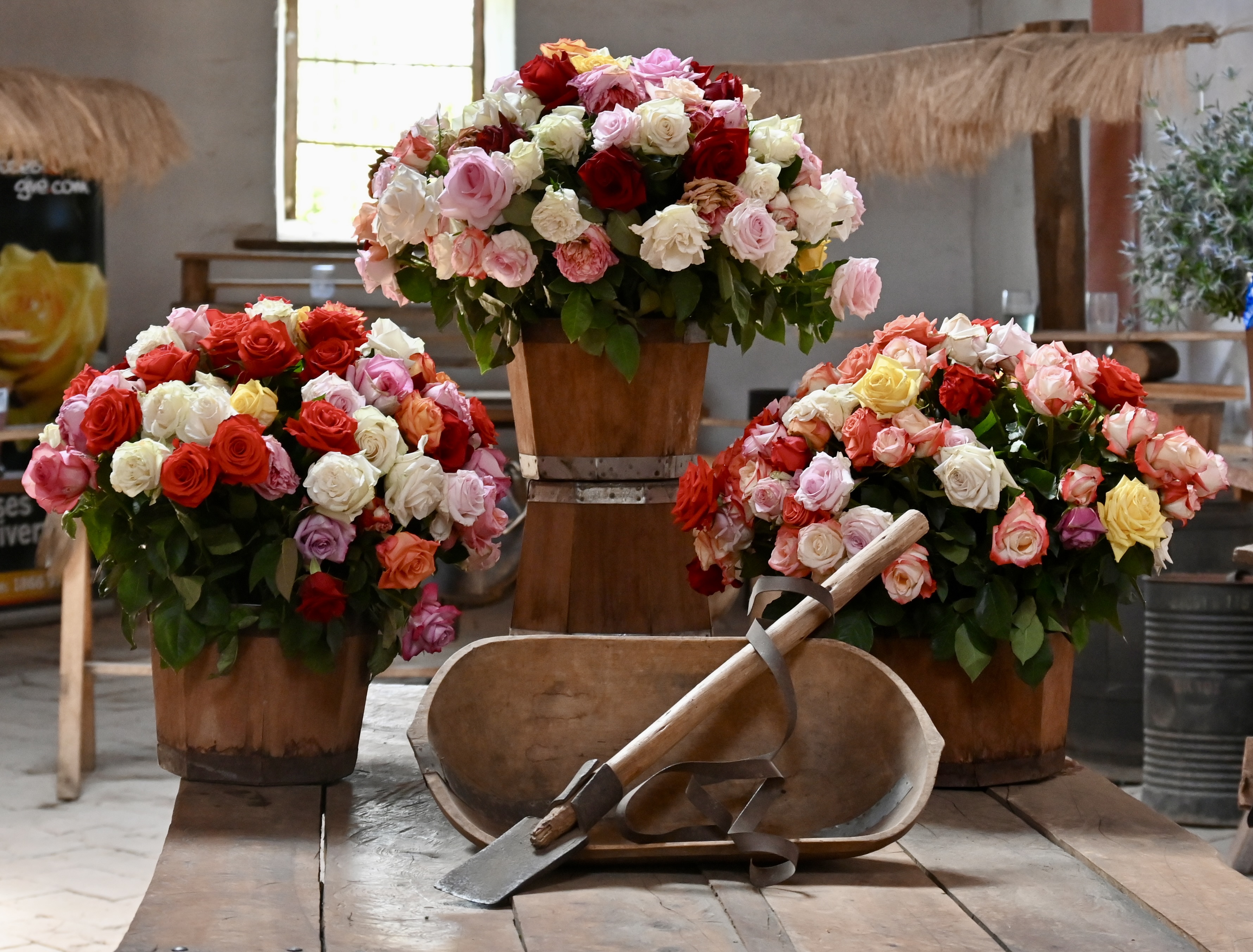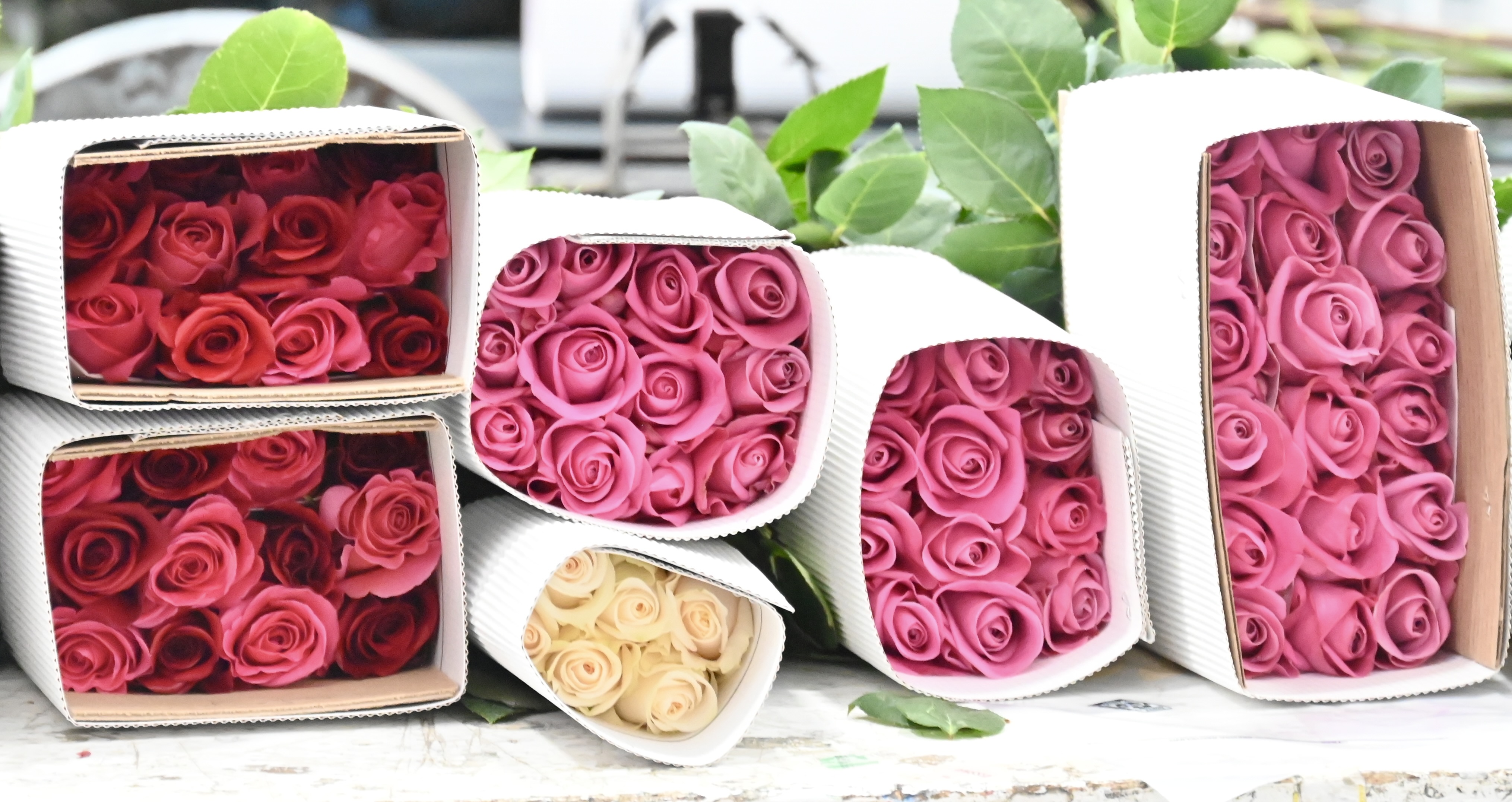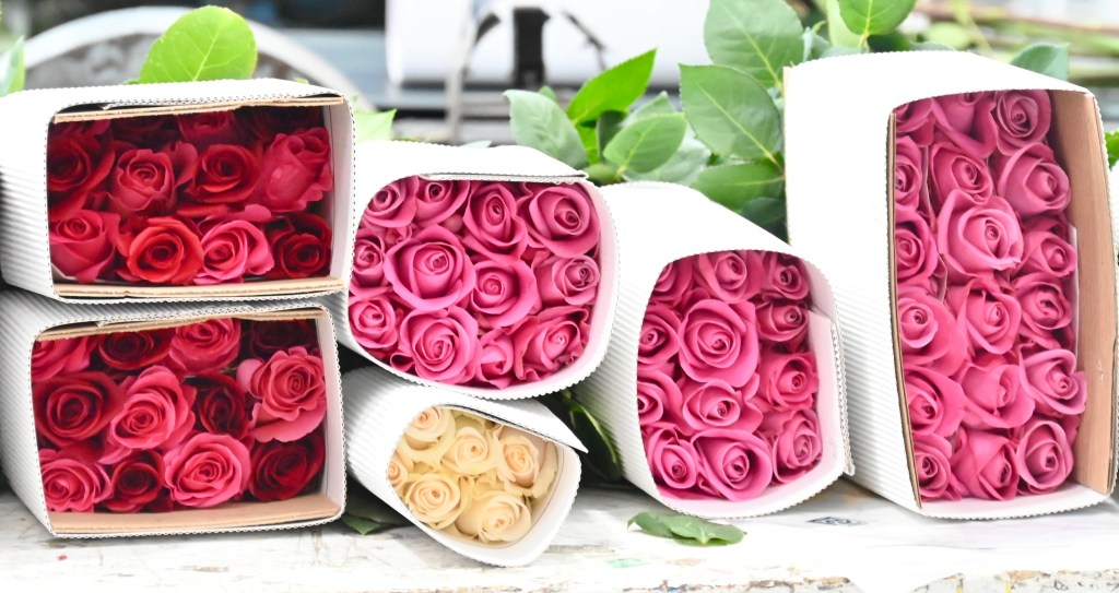 Rosadex is a labor-intensive operation. Rows and rows of rose bushes – each containing around 6000 plants – are hand-coddled. Once the roses are cut, they are transported by a manually operated trolleys to the on-premise sorting and packaging facility. The place is a festival of colors, both natural and man-made (dyed).