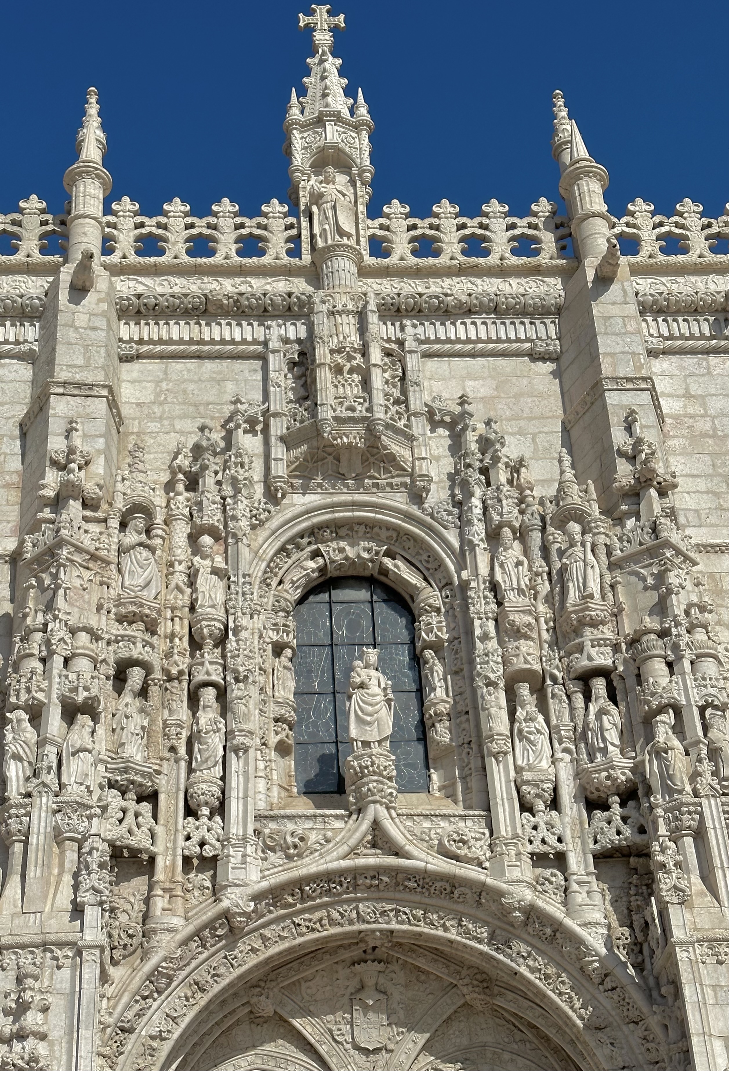 I learned this on a morning tour of the Mosterio de Jerónimos, which now houses the Museu de Marinha (Maritime Museum). The museum has a wonderful collection of relics and maps, as well as scale models of the explorers’ ships. Our terrific and entertaining tour guide, Daniel, filled our heads (albeit temporarily; mine already is close to full capacity) with lots of interesting facts. Most notable was a lesson in 16th century tax avoidance. Merchants brought back all kinds of goods from Africa and Asia, including coconuts and pepper. Coconuts were lightly taxed; pepper was much more heavily burdened. What to do? Hollow out coconuts, fill them with pepper, and put them back together, thereby importing pepper but paying only the duty on coconuts.