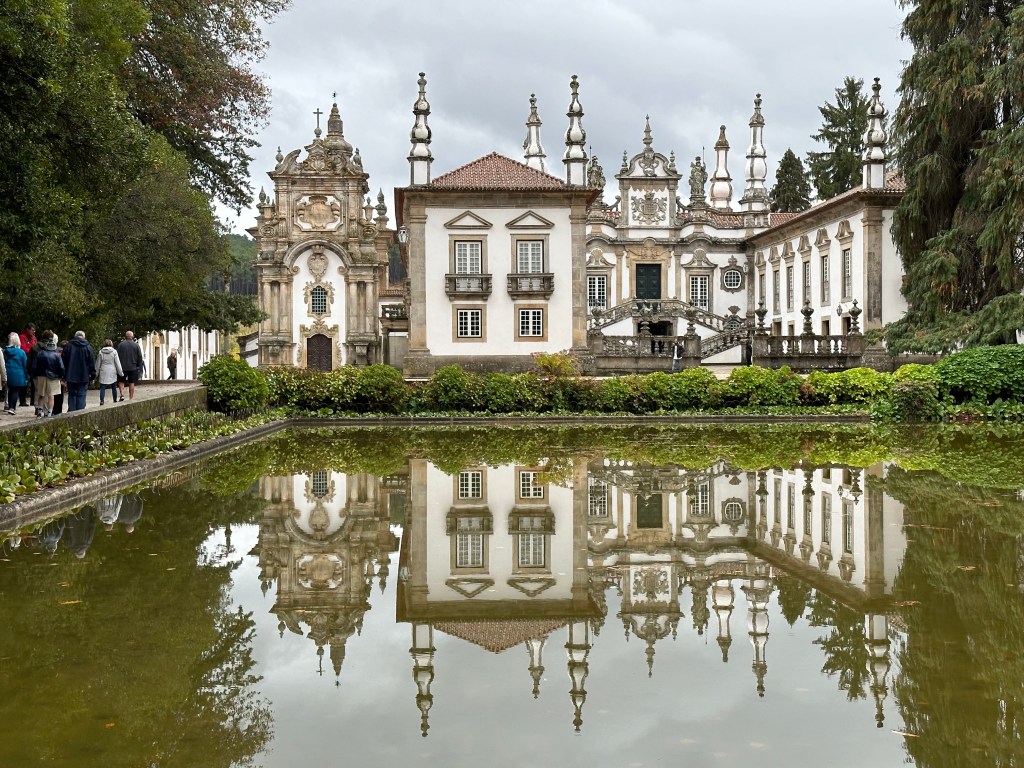 On our first day on the Douro, we sailed through the drizzle past steep, terraced hills to Regua, a town within easy bus distance from the Mateus Palace and the Sandemans port distillery. The Palace has nothing to do with the wine other than the fact that the owners licensed the façade’s image to grace the label. Alas, seller’s remorse kicked in when the palace started producing its own high-quality wines and saw their stately home associated with what they considered plonk.
