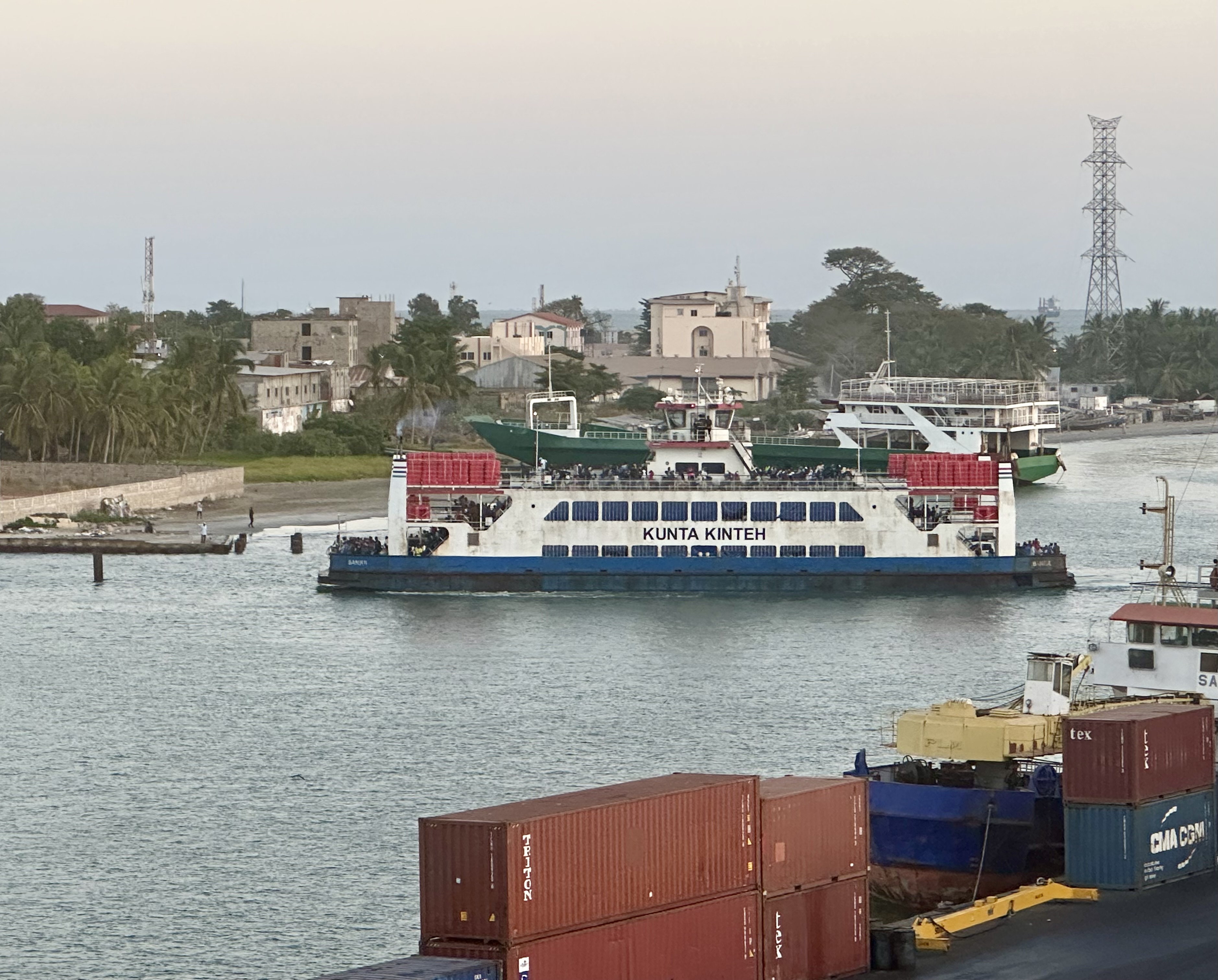 Banjul, where we docked, lies on the south bank of the Gambia River. We took a ferry across to Batta on the north bank, and the ferry ride itself – mundane as it must have been for the locals – was to me everything I would have wanted for my introduction to West Africa. Most women were dressed in vibrantly-patterned, free-flowing garments called grandmubas. Many of them, majestically erect, balanced baskets of cashews or oranges on their heads. Lilting Mandingo and West African-accented English filled the air, and overcrowded “water taxis” – basically motorized canoes – zipped past us.