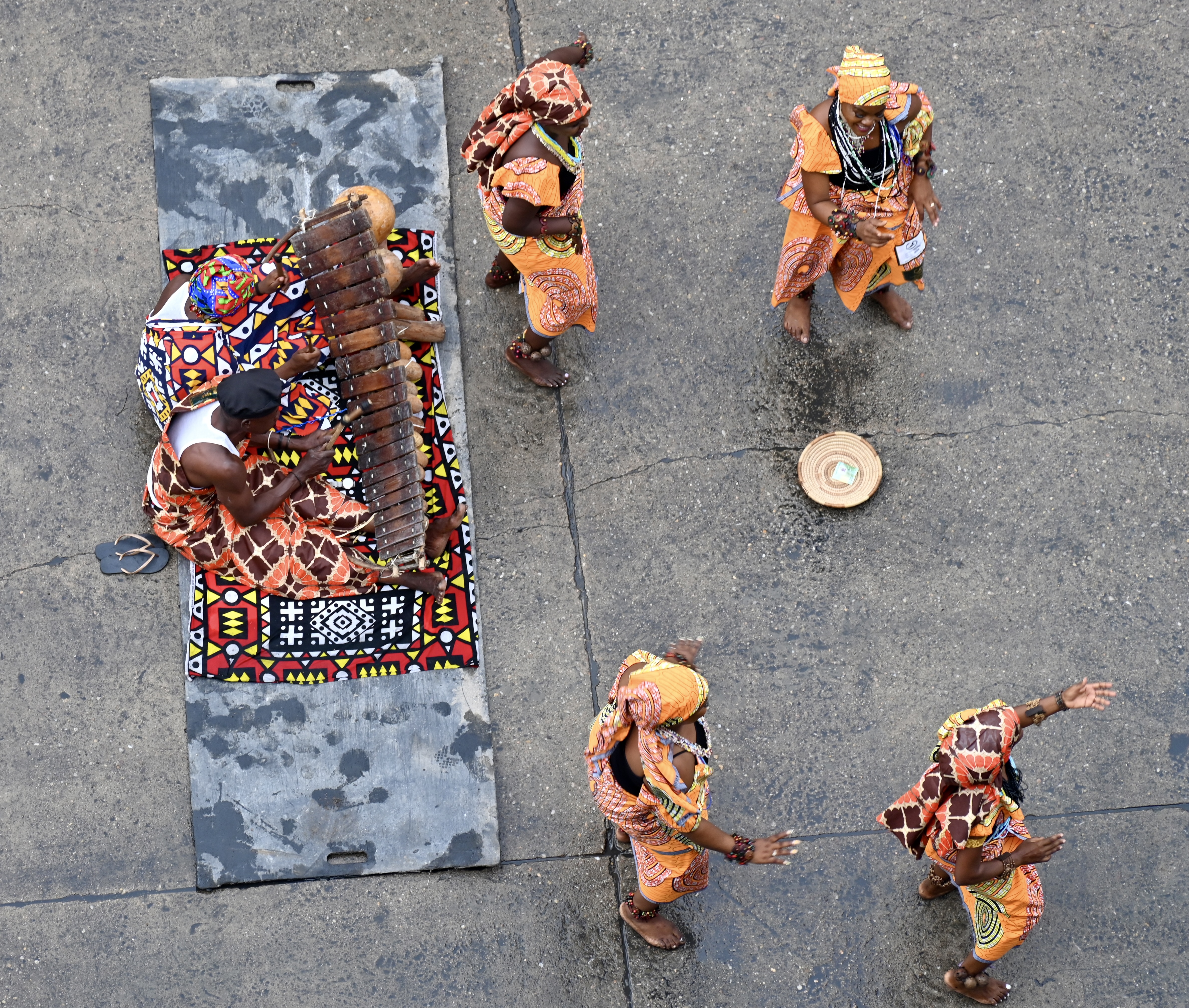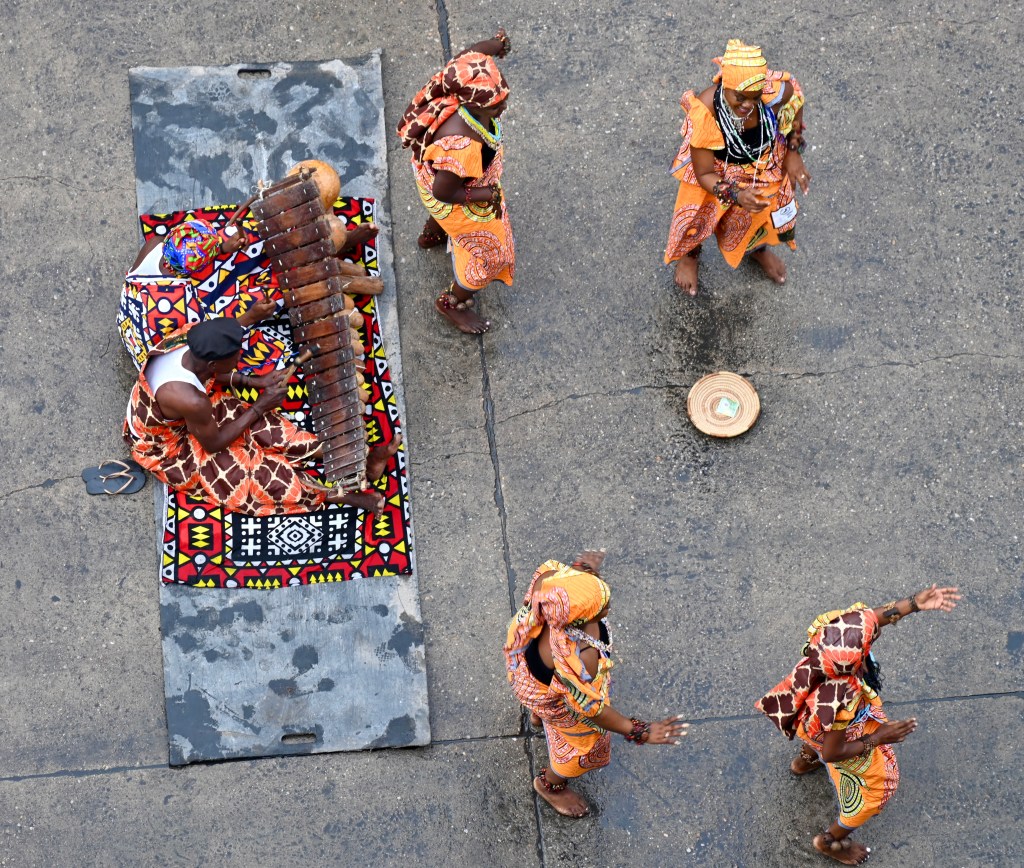 When you get off, local artisans man folding tables piled with clothes, carved figurines, and beads. This morning, a woman sitting on a colorful carpet played a balafon – a wooden African xylophone – while four other women danced. In this way, the arrival experience confirms that you are travelling in a unique country from the moment you set foot on land.
