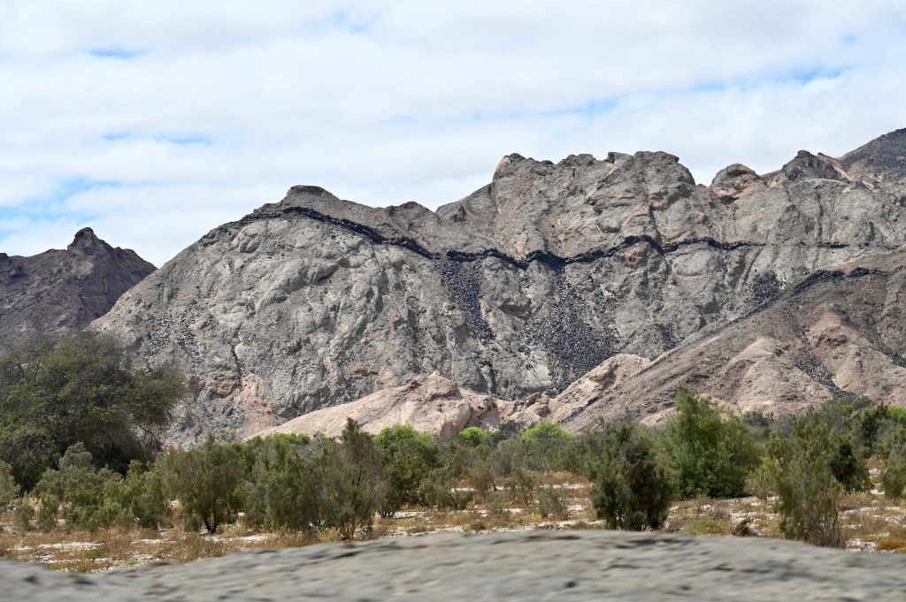 Following the dried-out bed of a seasonal river, we passed “riparian forests” – stands of scrubby trees – and post-apocalyptic crags (Mad Max was filmed here in part) on our way to Goanikontes Oasis.