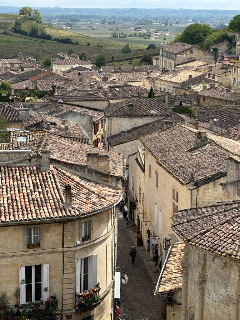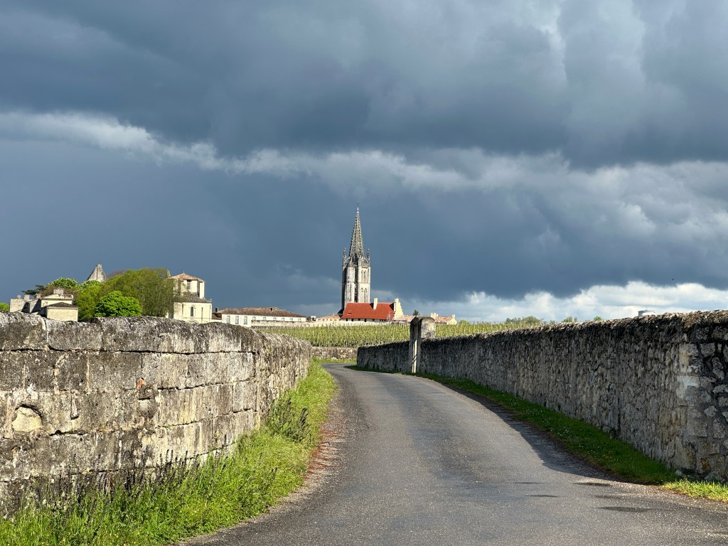 I had already arranged – once again through Tours by Locals – an all-day e-bike tour on Saturday of the Saint-Émilion region, known for spectacular wines. On a day of sporadic heavy downpours, we managed to spend a dry couple of hours in the morning cycling past expansive (not to mention expensive!) vineyards, centuries-old chateaux, and millennium-old churches.