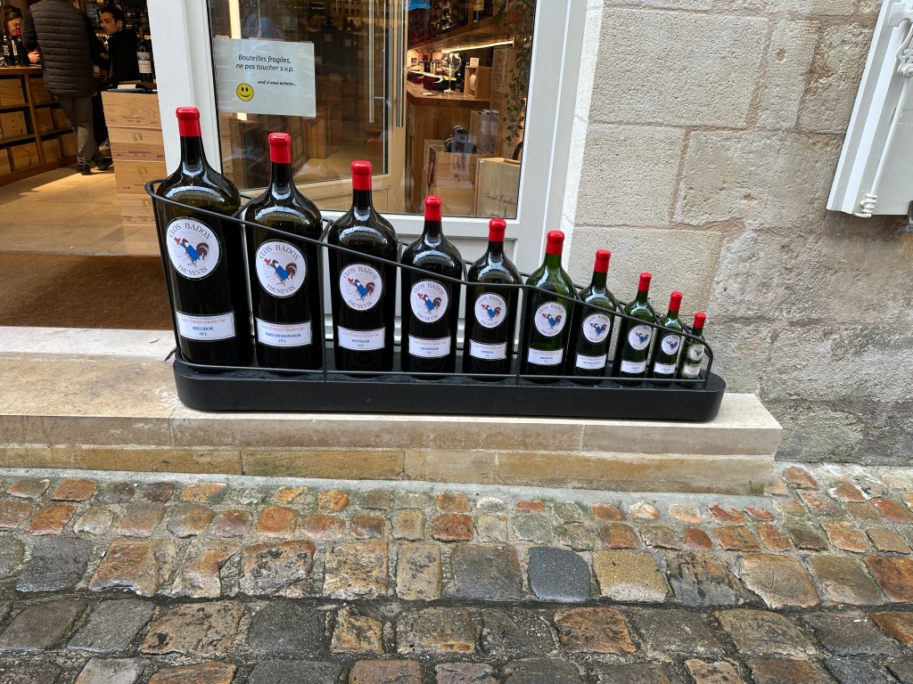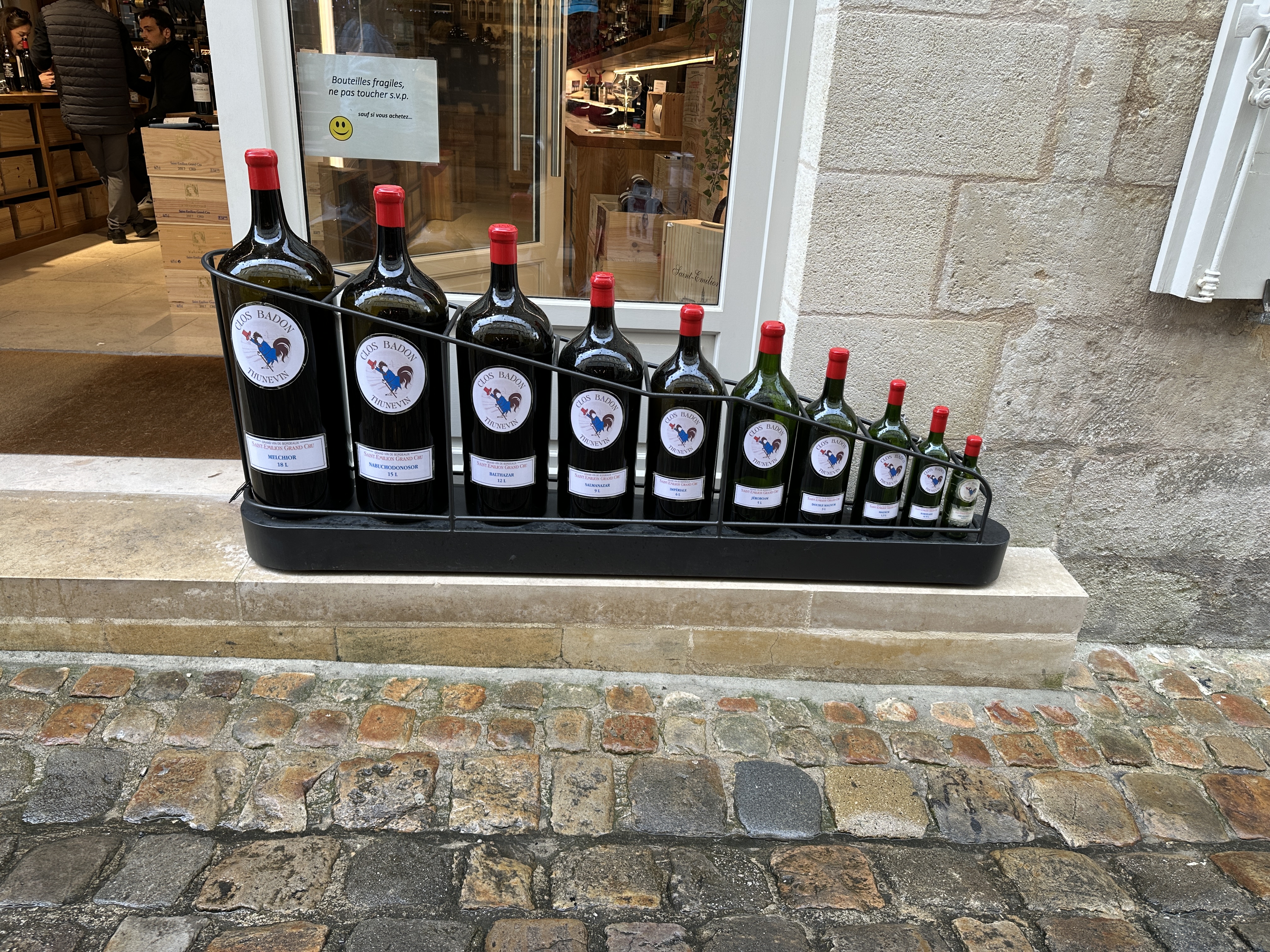 Tasting over, we meandered gingerly over the wet cobblestones along tiny lanes lined with wine shops, chocolateries, bakeries, bistros, and art galleries. In fact, the only store I saw that was not related to wine, food, or art was a pharmacy, which I assume keeps an ample supply of headache and heartburn remedies.