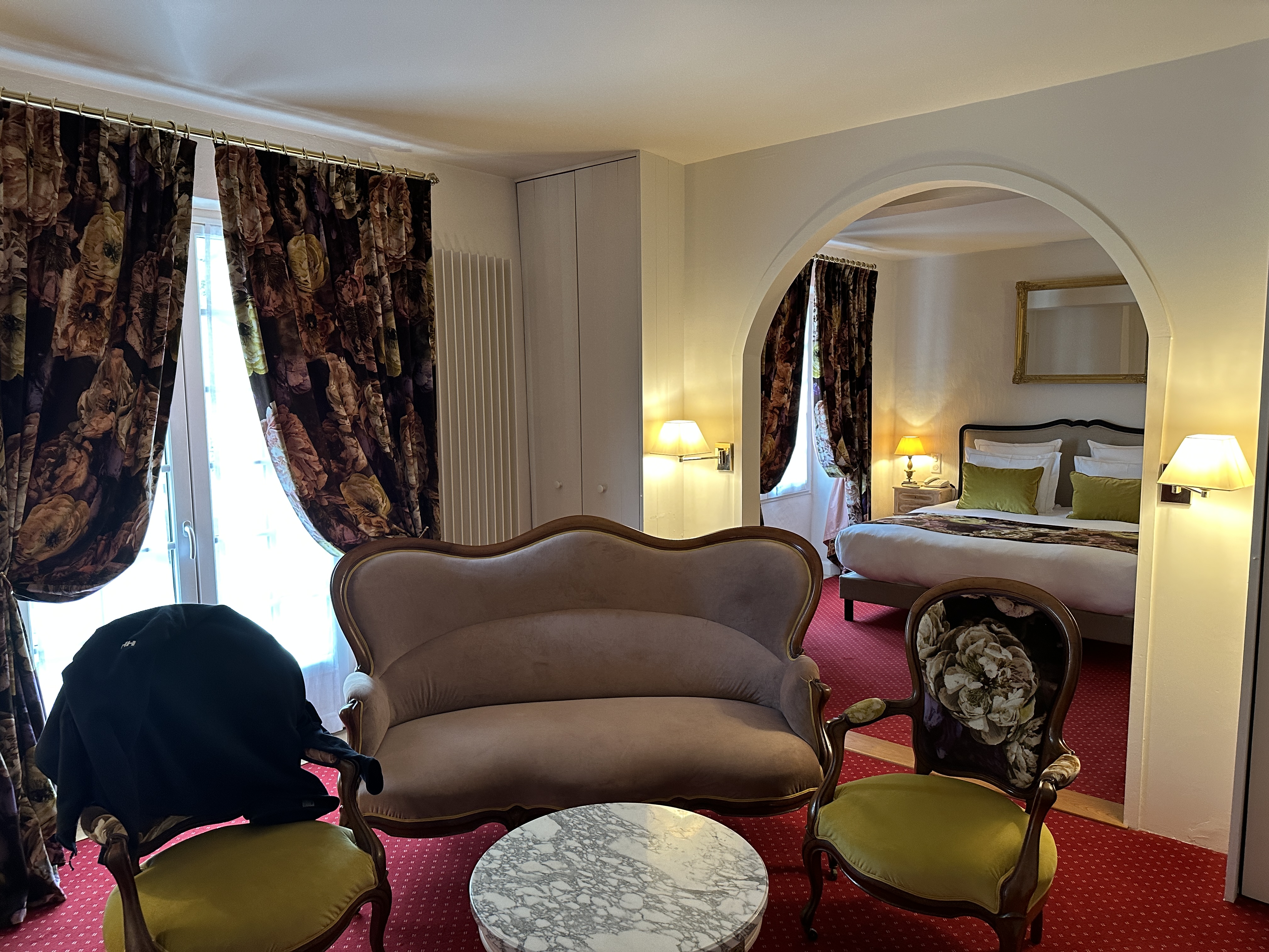 Here’s my recipe for quickly recovering from a stressful weekend: (1) check into a gorgeous room in a classy hotel in a picture book village (in this case, the delightful Le Centenaire hotel in Les Eyzies). (2) Attend a lecture by an engaging and enthusiastic lecturer (in this case, Dr April Nowell, our Smithsonian expert on paleolithic art and life). (3) Enjoy a fabulous dinner featuring three wines. Lost passport? What lost passport?