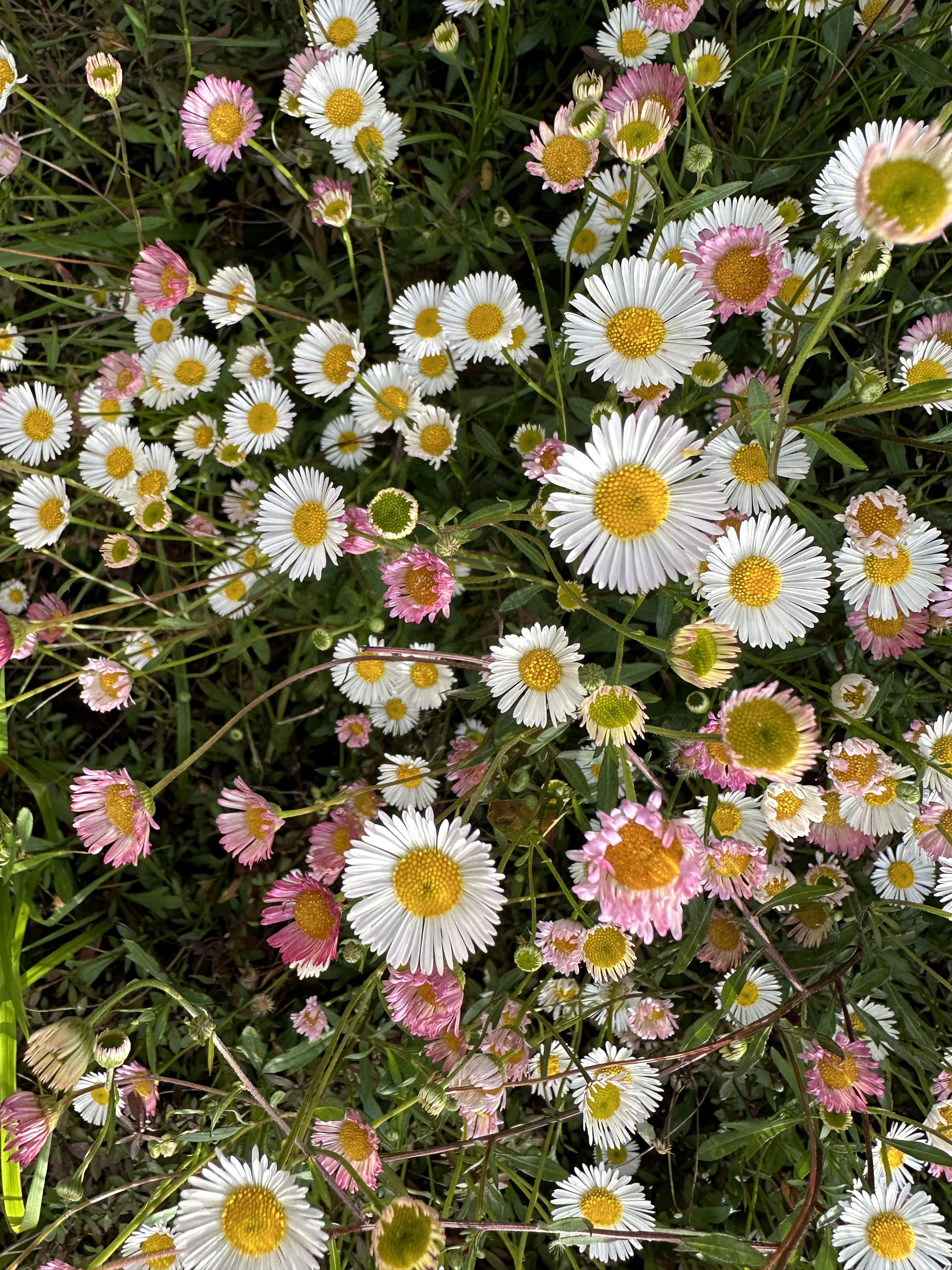 Our first stop, the caves of Monte Castillo (Castle Mountain), was perhaps 30 minutes from Santillana. There we toured two caves: Las Monedas (the coins) and El Castillo (the castle). The cave entrances are a hundred meters or so above the valley floor; the path between the two is lined with tiny, daisy-like flowers that Apple informs me are Fleabane.