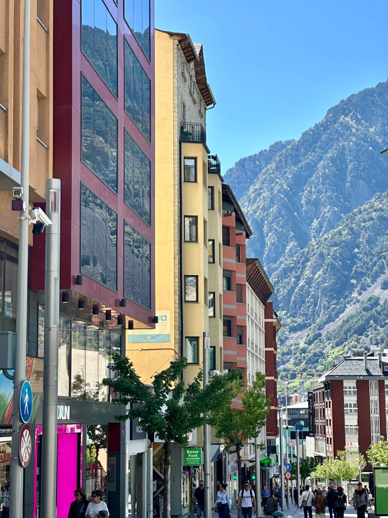 My hotel, the Hotel Starc by Pierre, is a brand-new, unabashedly modern structure in Andorra’s capital, Andorra La Vella, the principal city of Andorra for the past 750 years.  How modern is it?  When it came time to shut the lights last night it took me ten minutes to figure out how; when it came time to shower this morning, the process of keeping the rain shower on while shutting the side jets and hand-held wand took nearly as long.