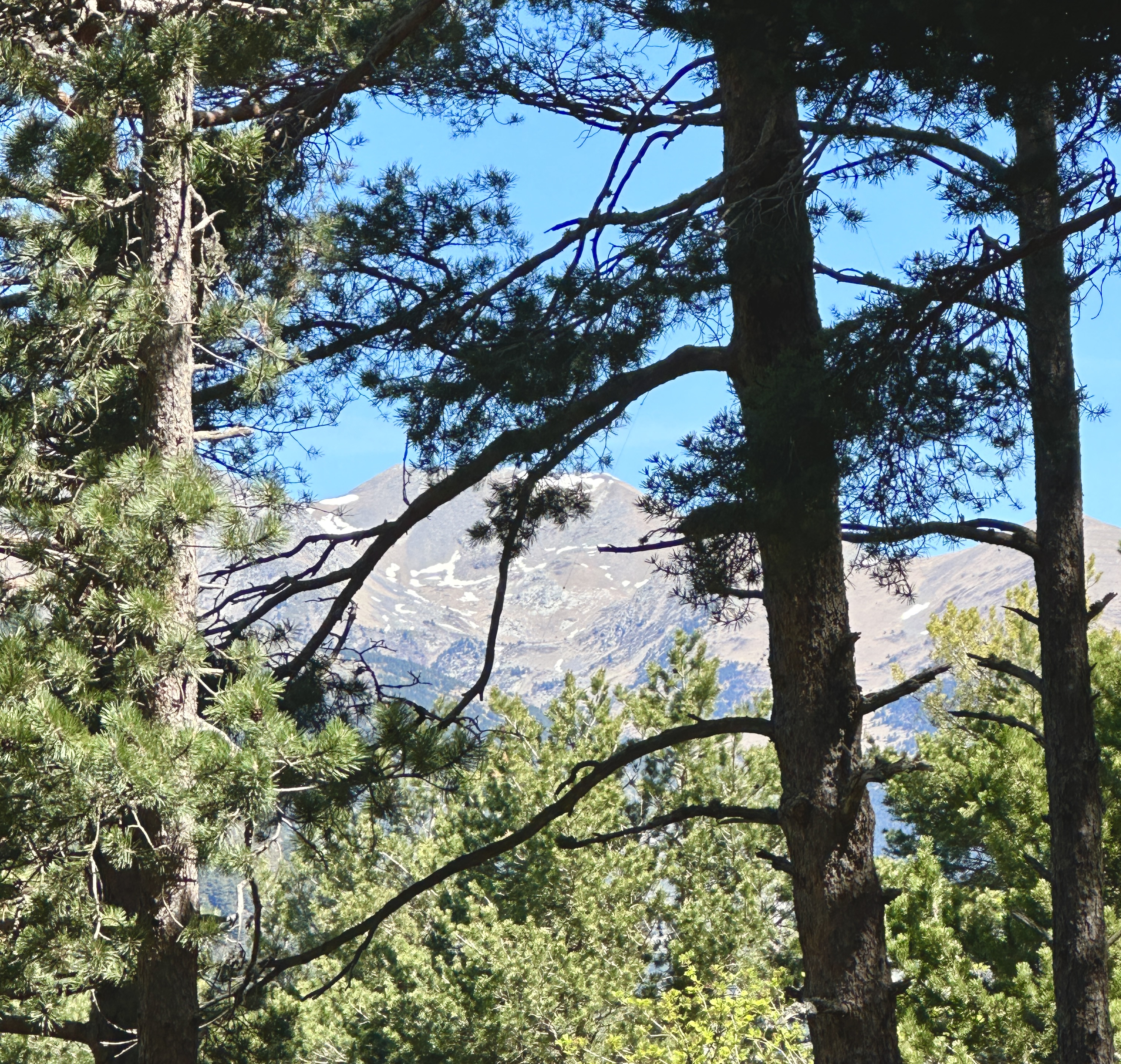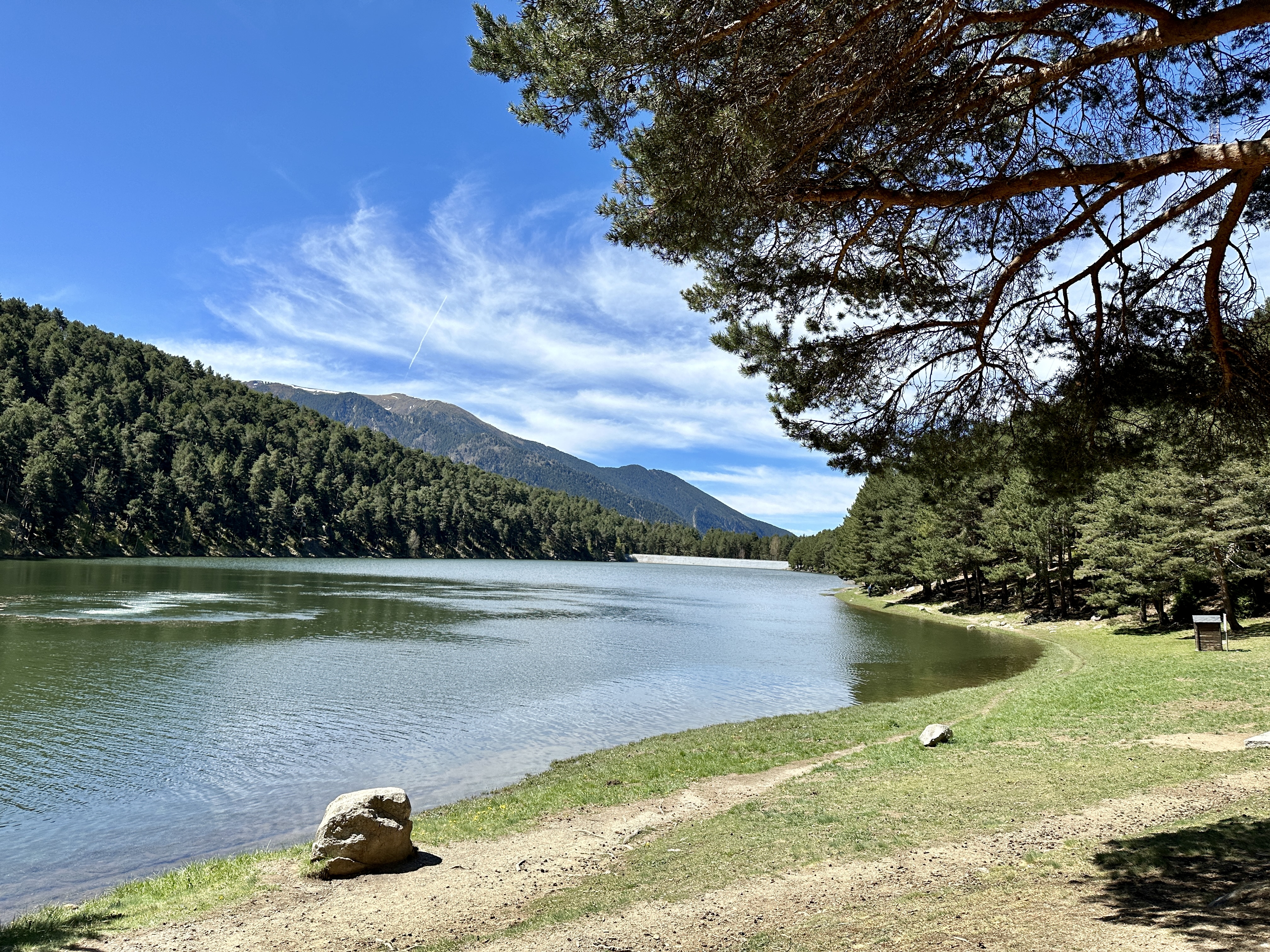 Close by Sant Miquel is a man-made lake (Llac d’Engolasters) surrounded by woodland and created during the aforementioned advent of hydroelectric power.  It’s a serene setting with a beautiful 4 km path around the circumference, frolicking dogs chasing sticks, and skittering lizards.  Through the trees, one can see snow-capped mountains establishing the northwestern border with Spain and the northeastern border with France.