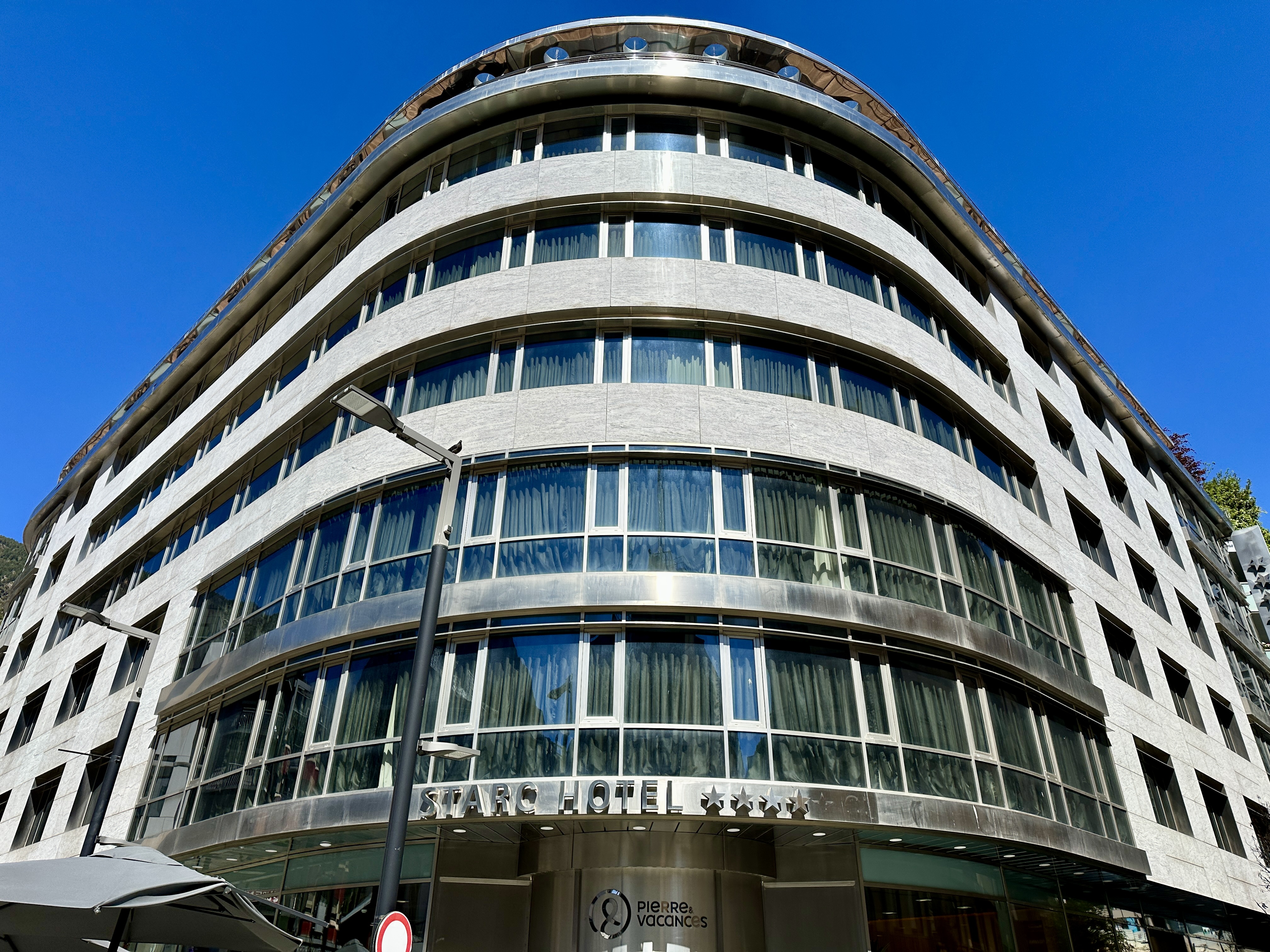 My hotel, the Hotel Starc by Pierre, is a brand-new, unabashedly modern structure in Andorra’s capital, Andorra La Vella, the principal city of Andorra for the past 750 years.  How modern is it?  When it came time to shut the lights last night it took me ten minutes to figure out how; when it came time to shower this morning, the process of keeping the rain shower on while shutting the side jets and hand-held wand took nearly as long.