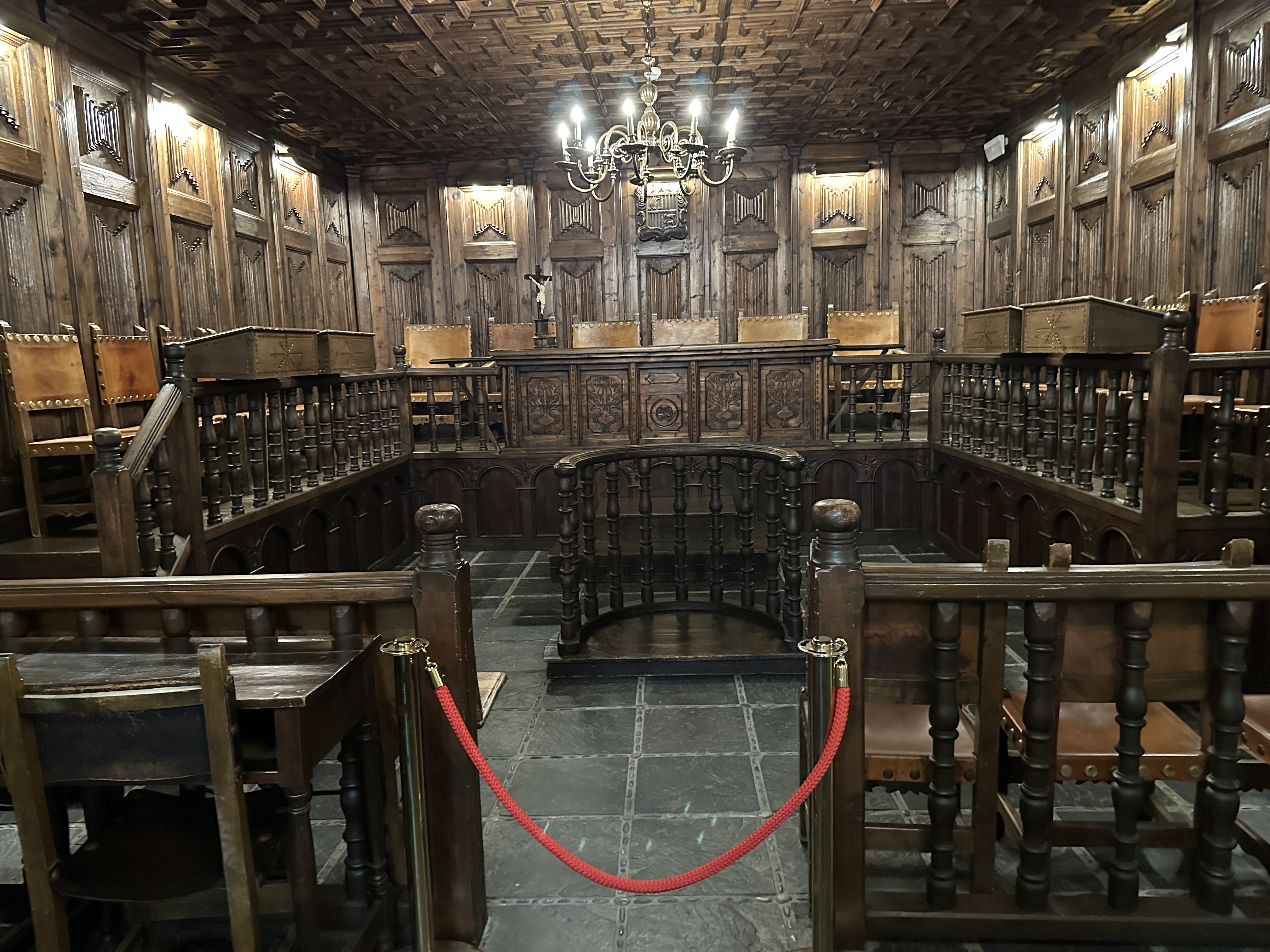 Our first stop was the old town of Andorra La Vella, which sits above the current main part of town (which, Ramón informed me, was farmland until perhaps forty years ago).  It’s an atmospheric neighborhood with the obligatory winding lanes and ancient stone houses, including Castel de La Vall, the home until recently of the Andorran Parliament and well worth a visit.  The new parliament sits next door in a boxy modern building that Ramón (and, I gather, many Andorrans) despises.