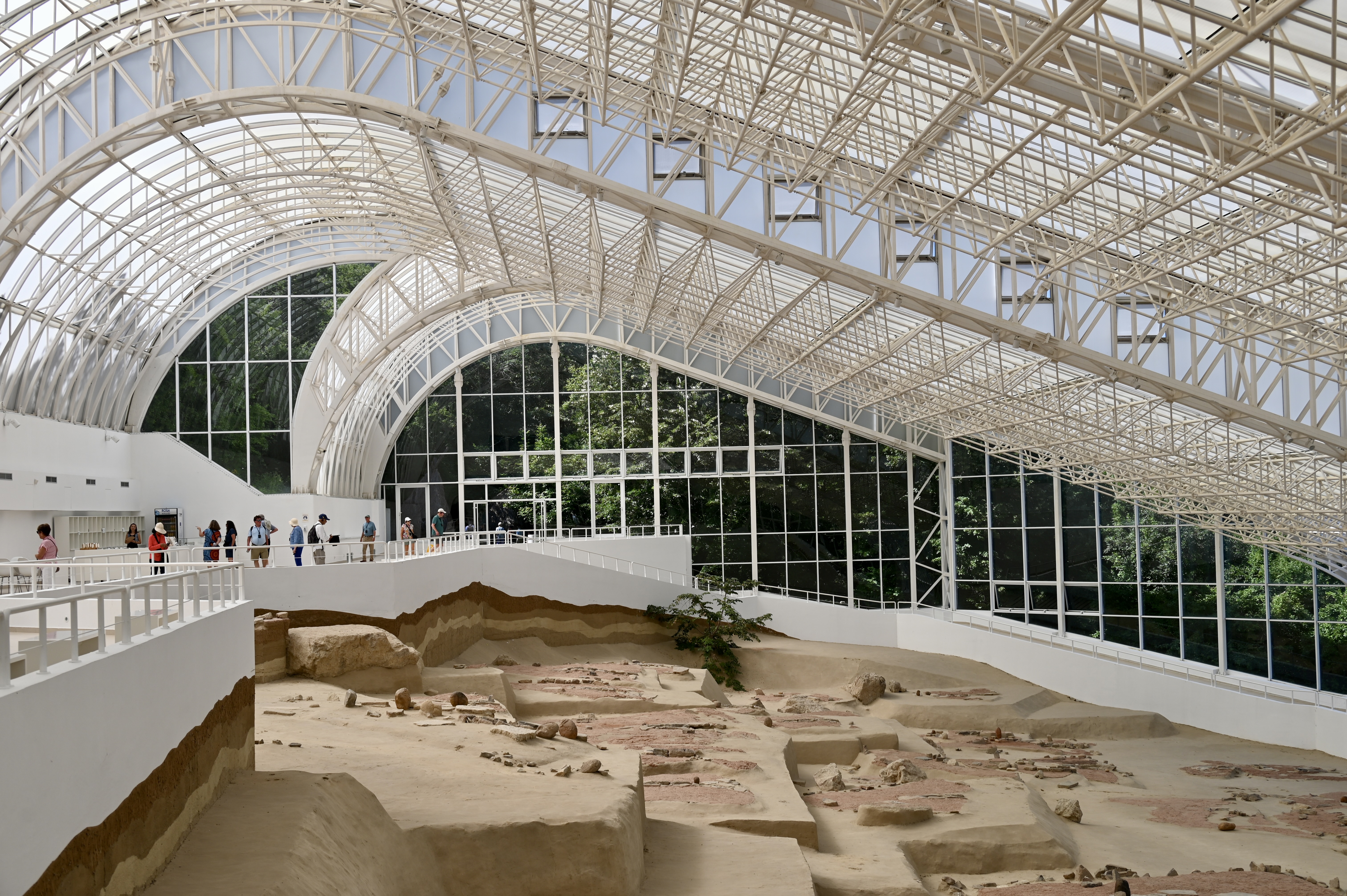 Before the area was flooded, the entire site was moved a kilometer upstream, where it is now housed in a striking, greenhouse-like structure that unfortunately functions as one would expect a greenhouse to function: it was hot as blazes inside.