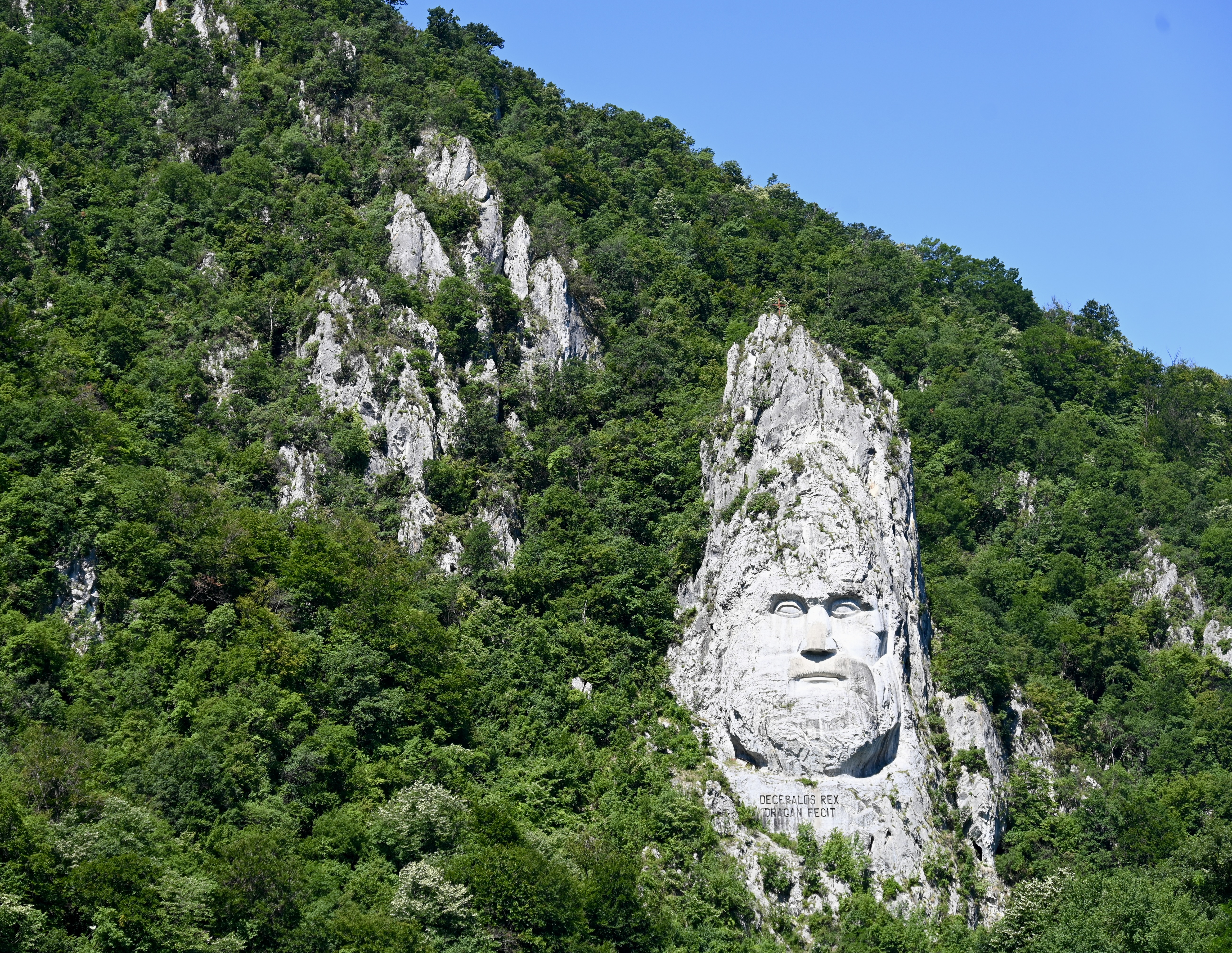 A bit further on, a Romanian sculptor, between 1994 and 2004, carved a massive sculpture of King Decebalus’s head (he was the last Dacian monarch and is a Romanian folk hero) into a cliff face – basically Romania’s equivalent of Mount Rushmore.