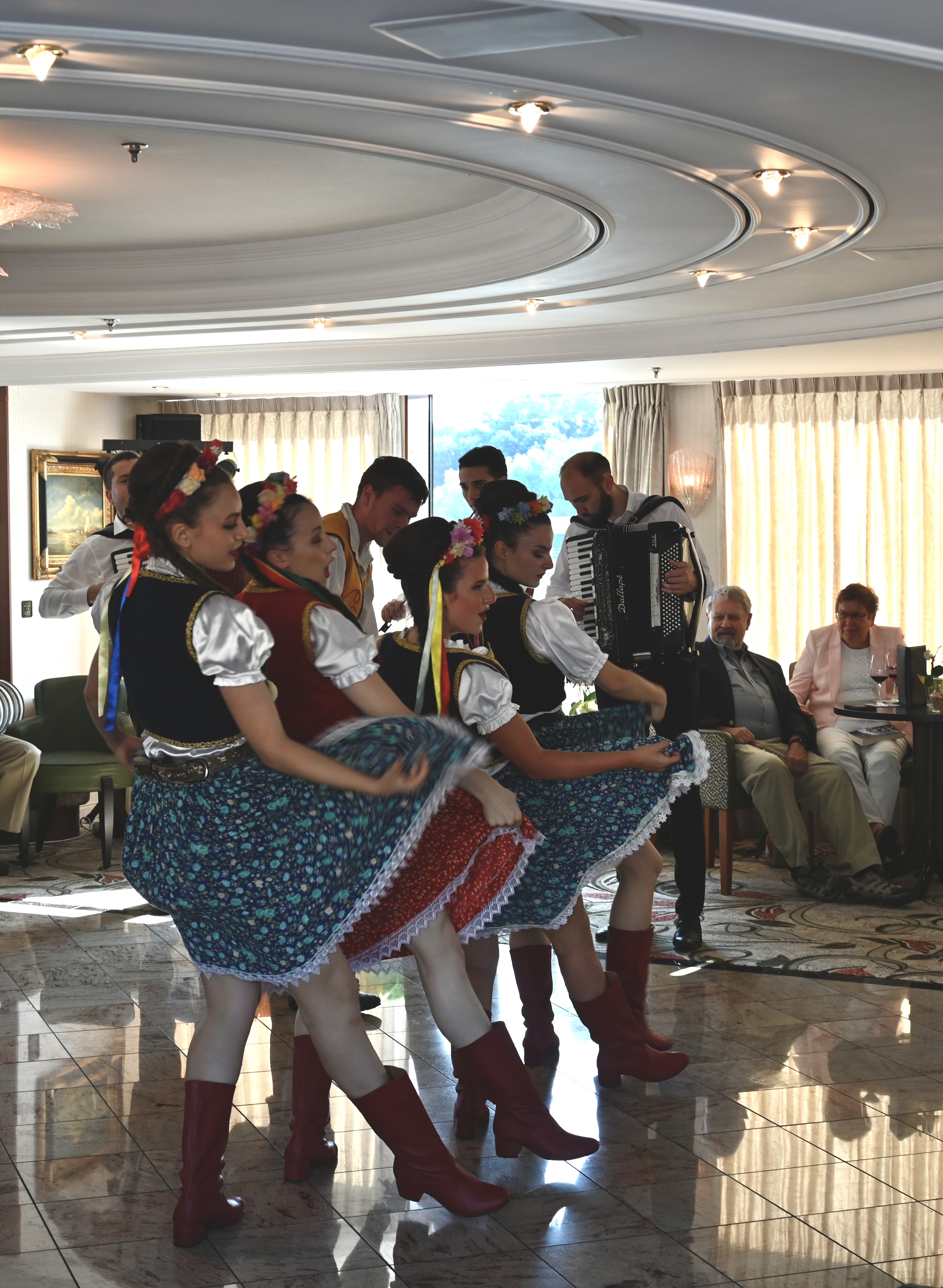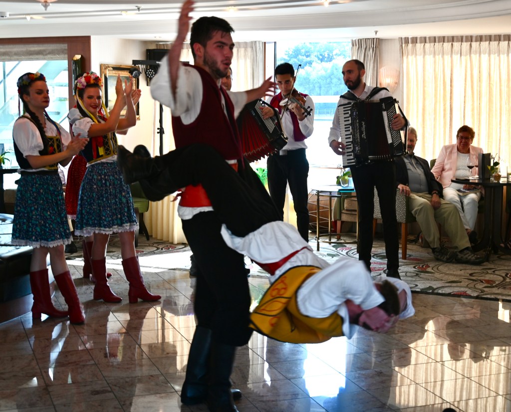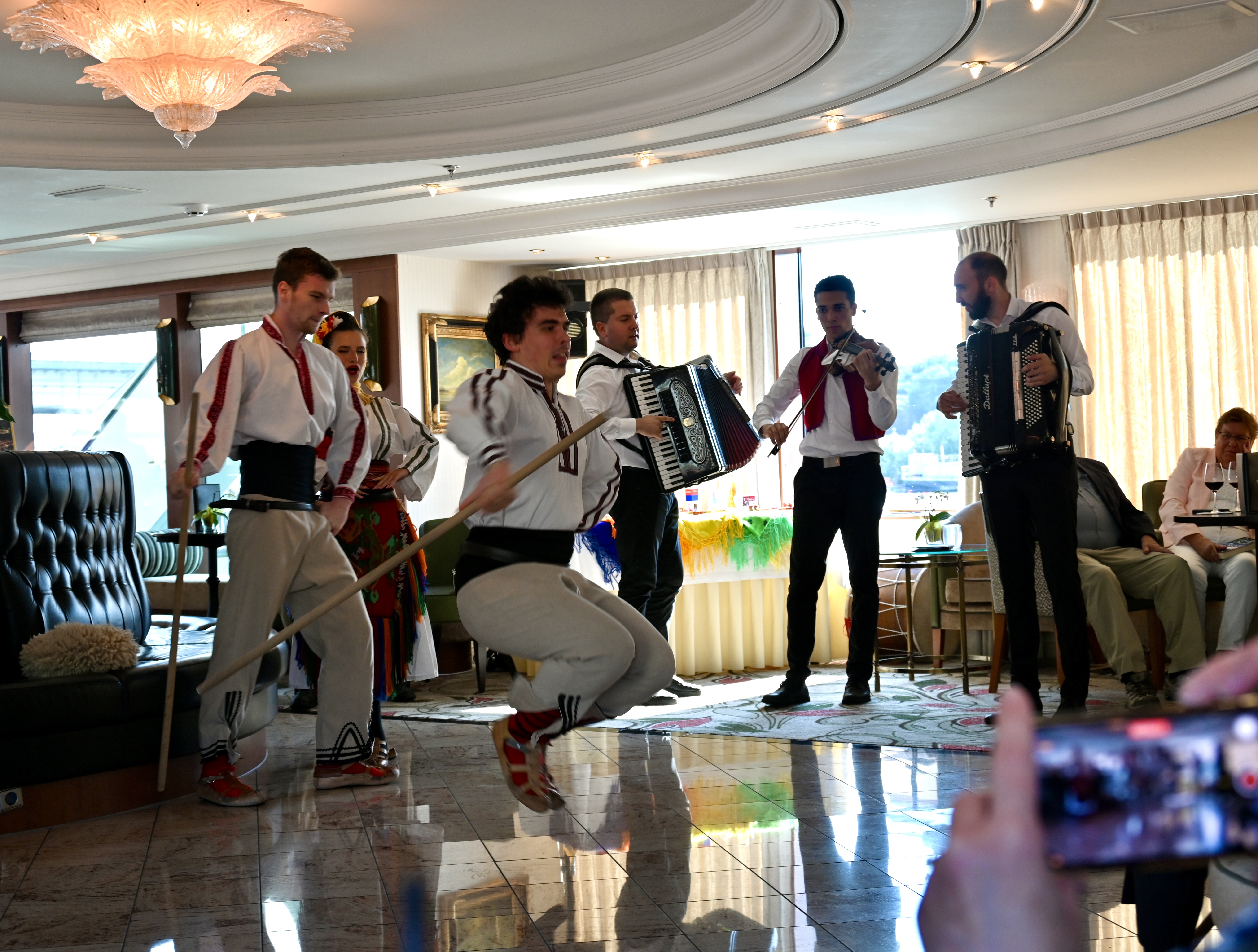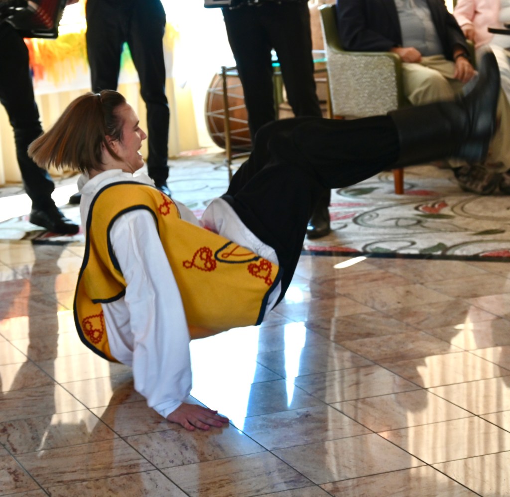 Later in the afternoon, Talija Art Company, whose musicians (two accordions, a violinist, and a drummer) and dancers treated us to a high-energy, amazingly athletic performance of Serbian folk dances. It left me exhilarated and with knees, back, and hips vicariously in a state of shock.