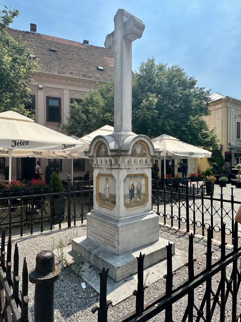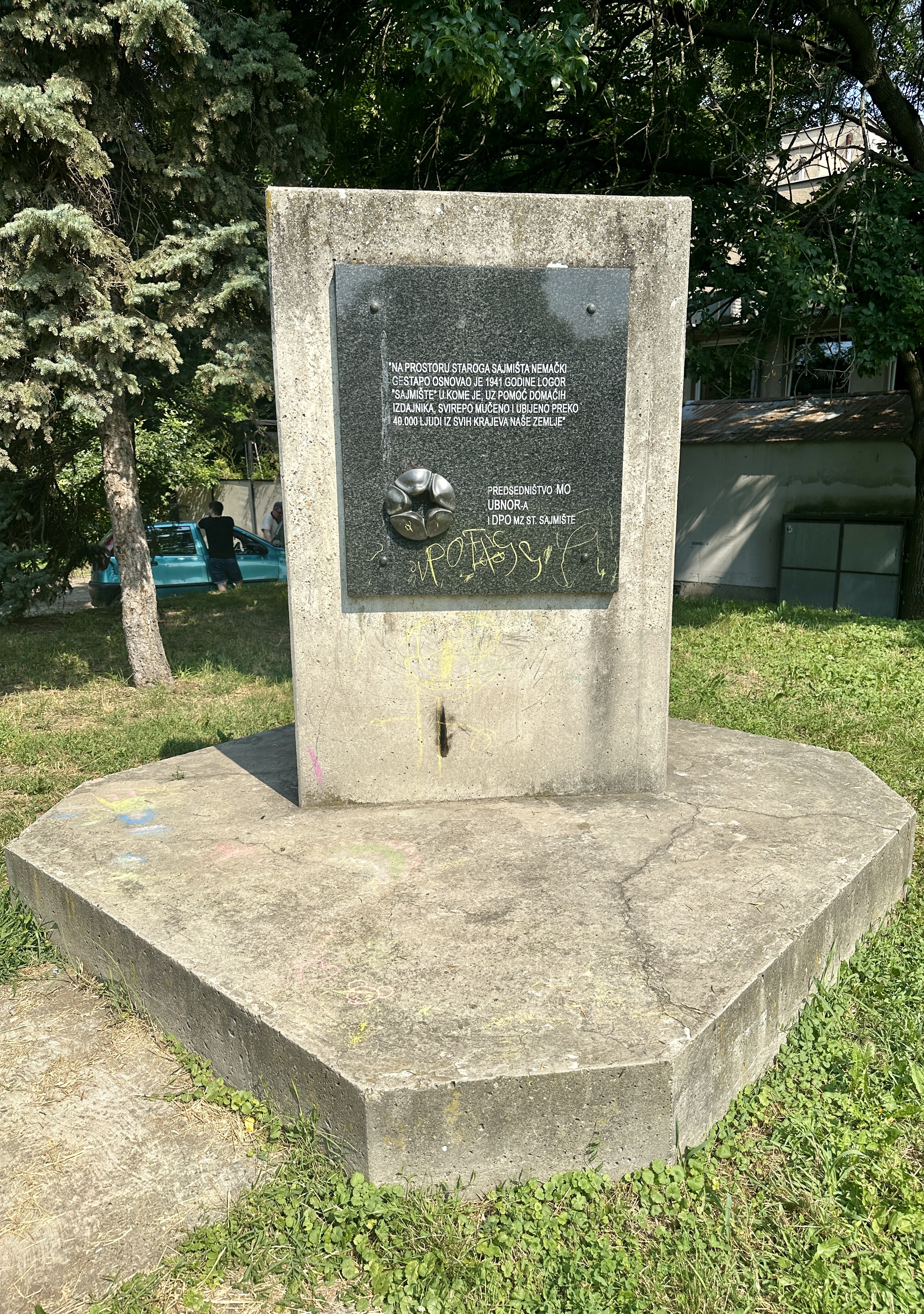 Biking through New Belgrade on a tour this morning, we stopped first in front of a small, out-of-the-way memorial to the 40,000 Jews, Serbs, and Roma killed at that site by the Gestapo in World War II. The memorial is fairly recent: during Tito’s reign there was no desire to acknowledge this loss due to a fear of stoking ethnic tensions and undermining the fragile Yugoslav alliance. Now, though (with ethnic and religious tensions running high), there are plans to convert an adjacent area currently occupied largely by Roma into an extensive memorial. (No word on what will happen to the Roma.)