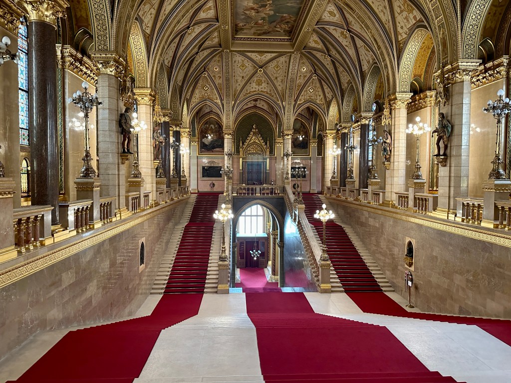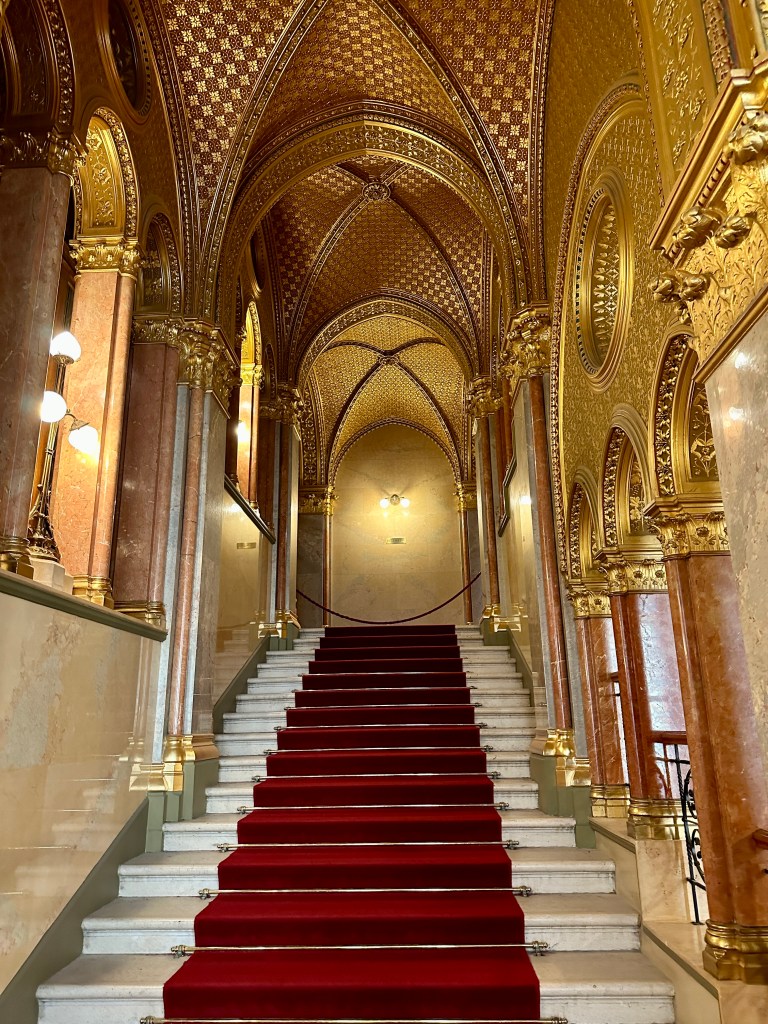 From the ship, our guide, Ádám, brought us to the ever-so-modest Hungarian Parliament building. Rather than writing about our visit – adjectives have yet to be invented that accurately describe the interior – I’ll turn this part of the post into a photo essay: