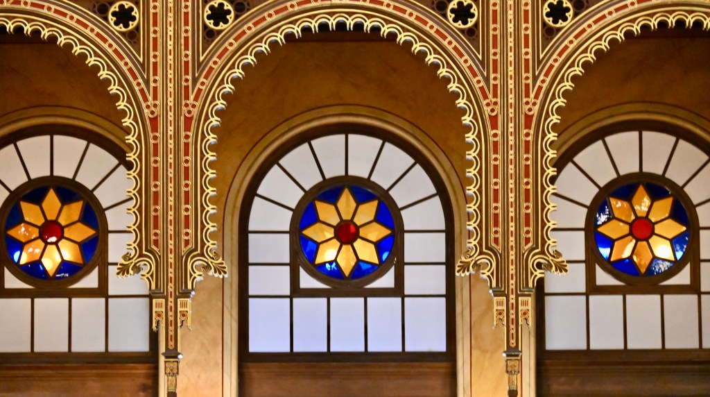 Our guide explained that the Jews of Budapest wanted to assimilate as much as possible, so they dressed in “normal” clothes, cut their hair, and chose a design their neighbors might recognize and appreciate.  They called themselves “Neologues” – conservative Jews with the external trappings of non-Jewish Hungarians.