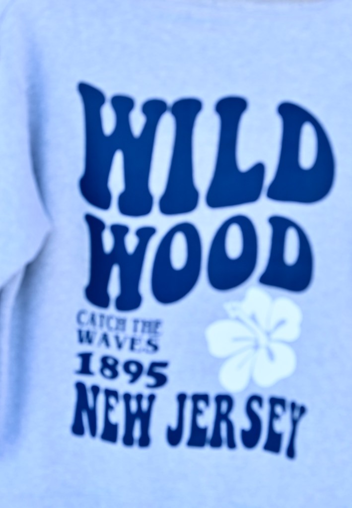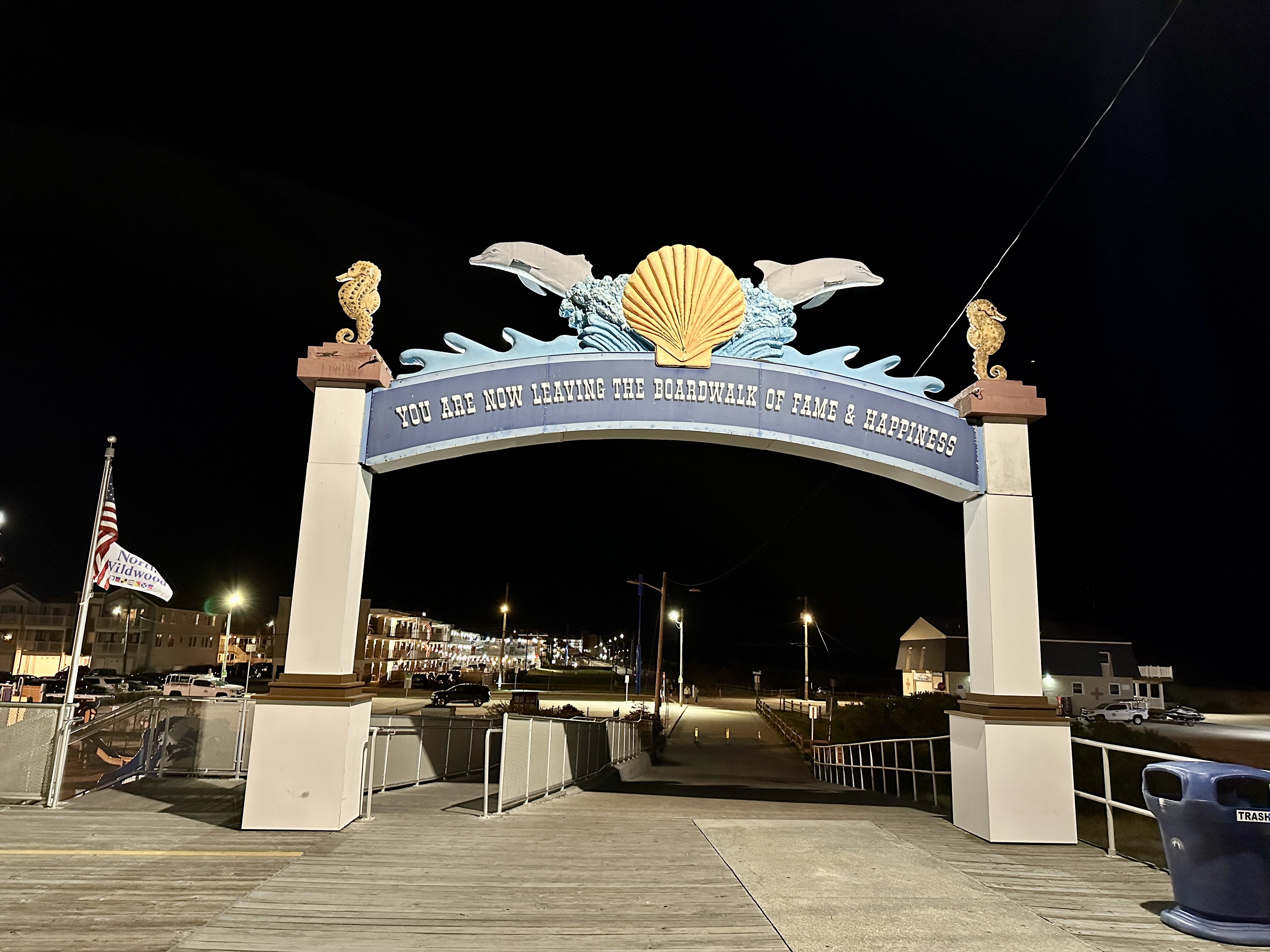 Wildwood – it’s actually three municipalities sharing a barrier island (from south to north, Wildwood Crest, Wildwood, and North Wildwood) – seems lost in time, which is appropriate given that stores on the boardwalk were selling sweatshirts with two different dates for its founding, 1895 and 1912.