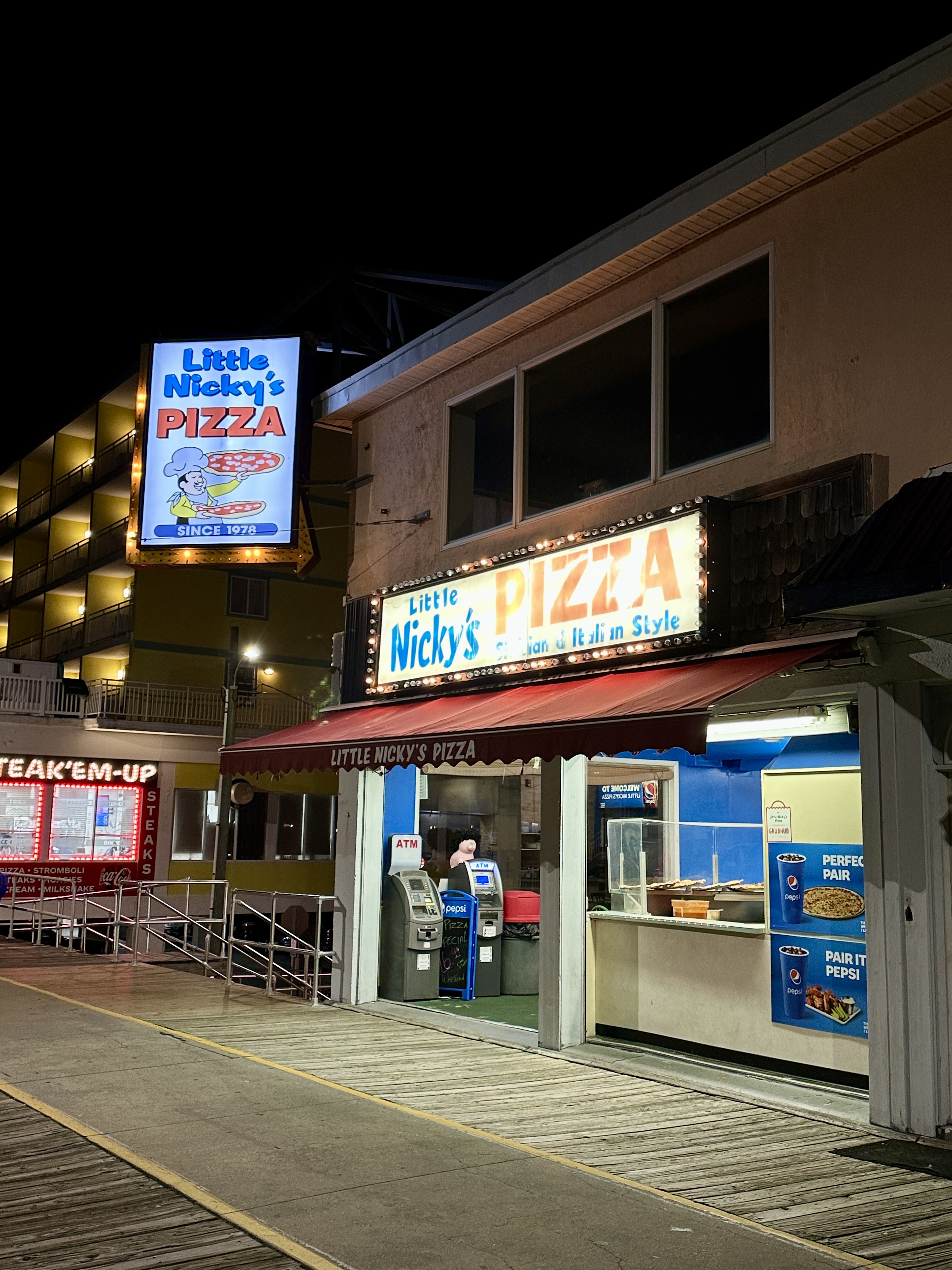 Yes, that’s an average of one every 500 feet or so. (A couple of people my son knows have done annual taste rankings of all the pizza places on the Wildwood boardwalk, an undertaking that would require me to lay in a lifetime’s supply of Gaviscon.)