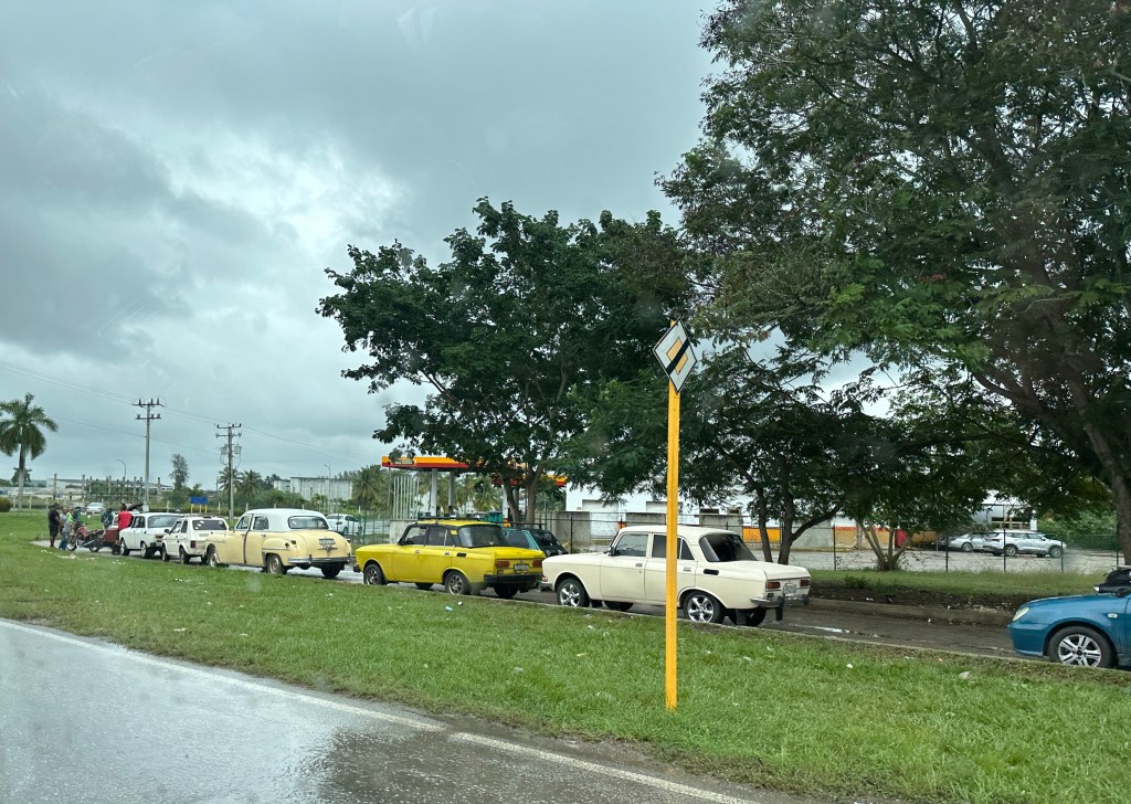Outside the major cities, there is little traffic on the roads, for the simple reason that many Cubans cannot afford a car. Traffic is further reduced by a serious fuel shortage, which requires ordinary Cubans either to wait in lines reminiscent of the US in the early 1970s, or to pay much higher black market prices. (Gas in the official stations is around 20 cents per liter if you can find it.)