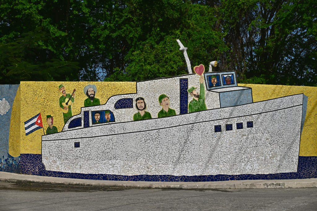 Catty-corner to Fusterlandia, a mural depicts Fidel and Raúl Castro, Che, and other leaders of the Cuban Revolution on the boat (the “Granma”) that brought them from Mexico to Cuba’s shores. (The actual Granma is on display at the Museum of the Revolution.)
