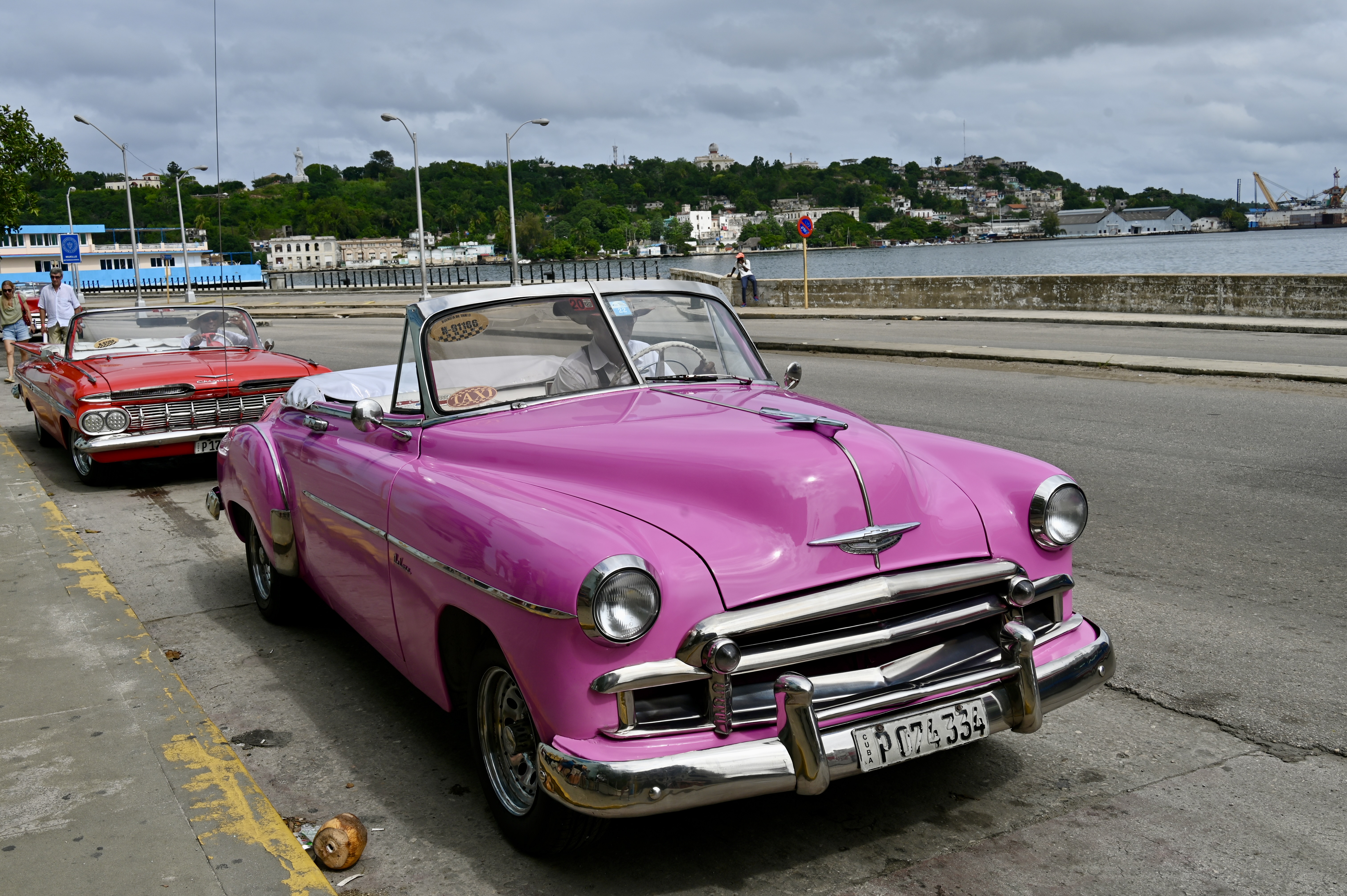 I got the impression that in Havana, these beautifully restored cars are used almost entirely in the tourist trade. Elsewhere on the island, we saw plenty of old American cars, painted in more traditional colors, that I think were used mostly as personal vehicles.
