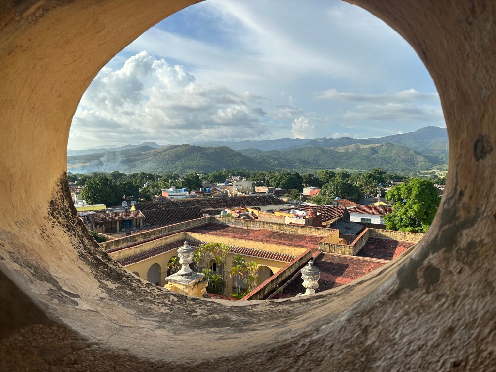I didn’t catch the name of our guest house in Trinidad, but its address is 235A Francisco Cadahía, and the owners are wonderfully hospitable. The house has a rooftop terrace with panoramic views. What it didn’t have was hot water in the shower, but I was so sweaty from wandering around town that the cold shower was much appreciated.