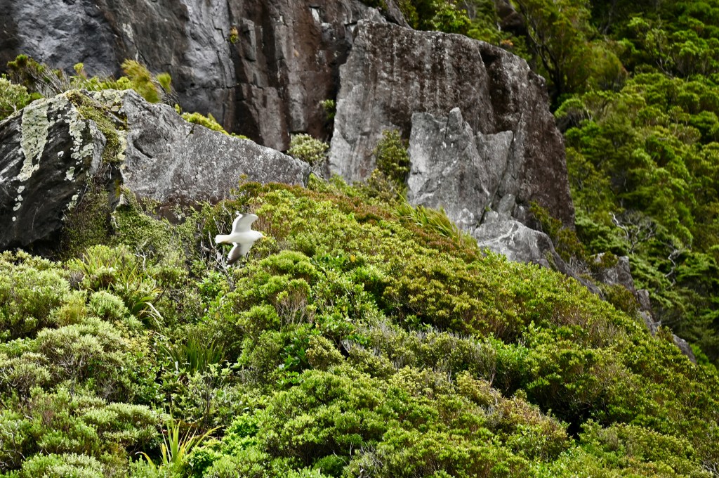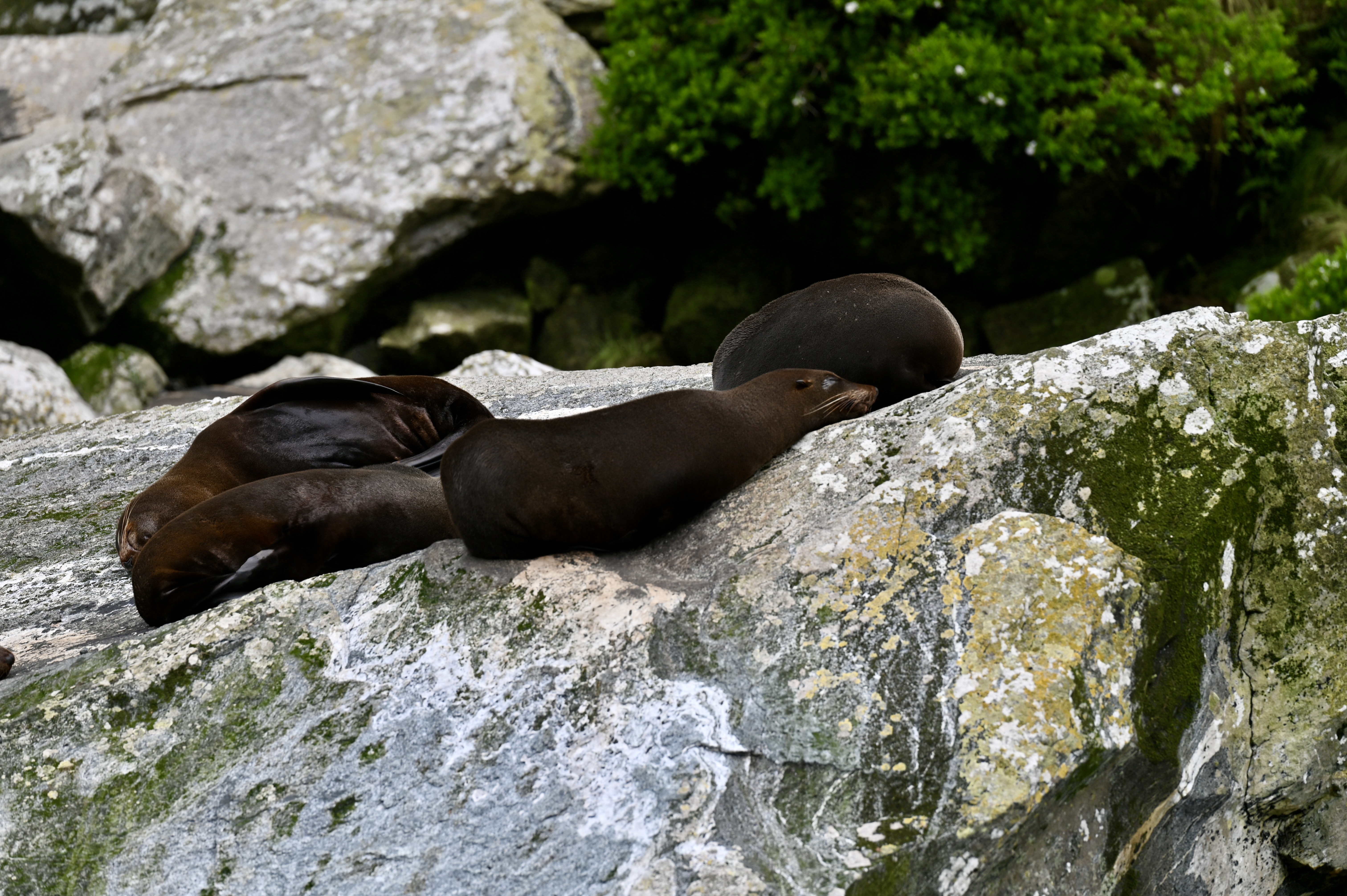 Sea birds glide and swoop, waterfalls spray, spume, and roar, and New Zealand fur seals do absolutely nothing except lie on rocks, at least while we were there.