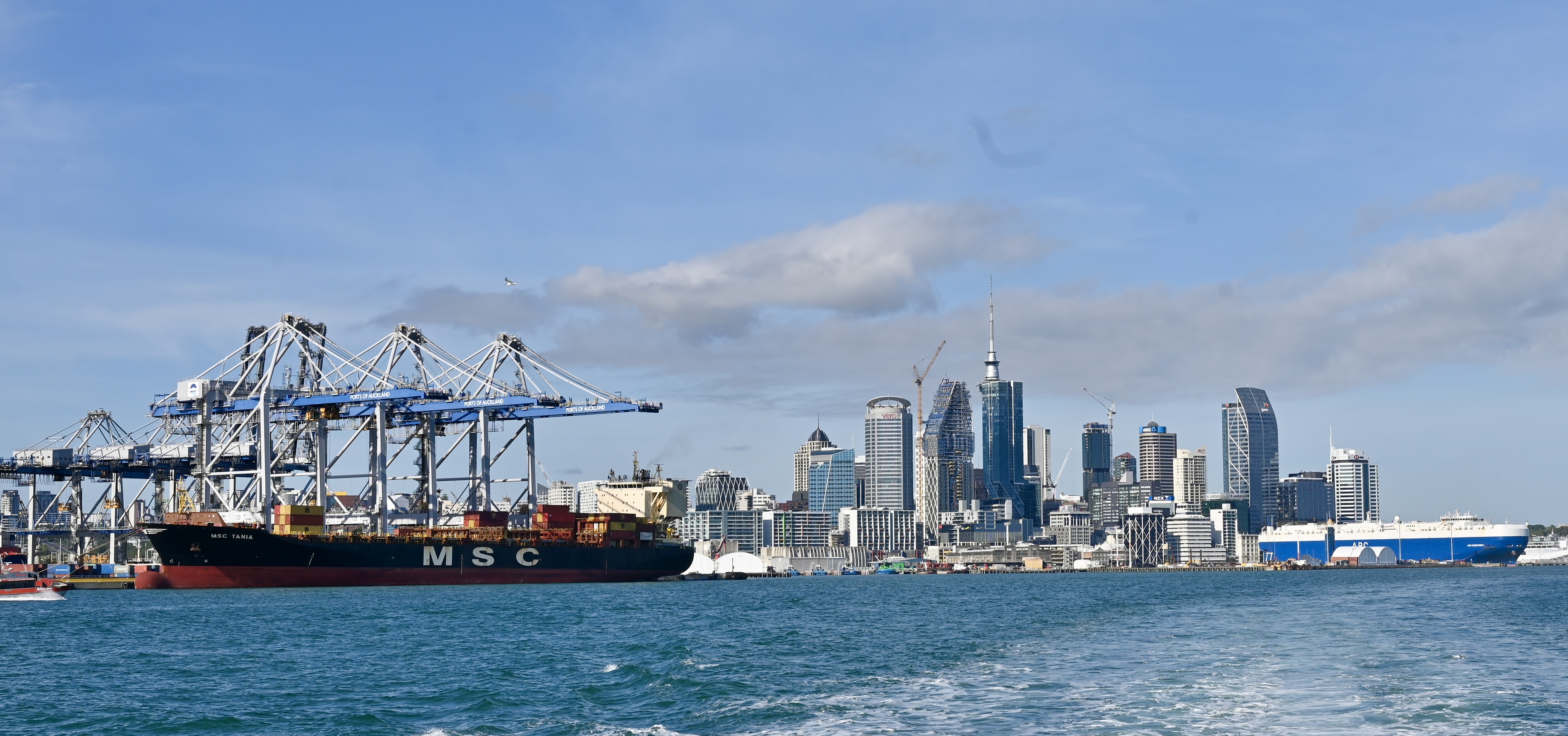 Auckland faces onto Hauraki Gulf, roughly two-thirds of the way up the North Island. We were fortunate to have two days of beautiful weather to explore the area. Our hotel (the Sofitel, generic modern) abuts a yacht-filled marina, and a walking path extends along the adjacent harbor for several kilometers – a perfect (if largely theoretical) venue for burning off recent indulgences.