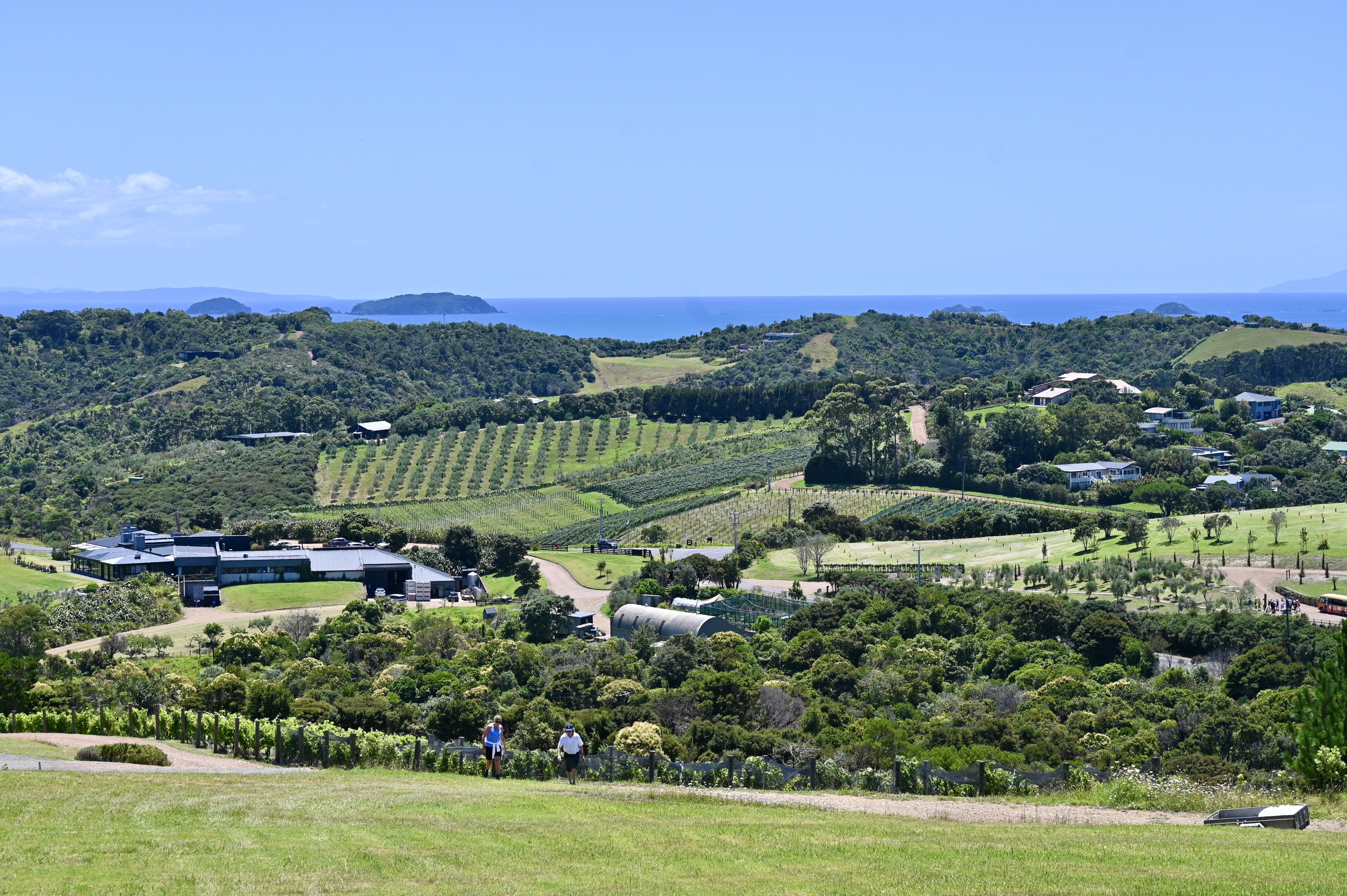 Climbing up the hill behind the winery – miraculously unaffected by the day’s libations, I might add – I reached a spot with a stunning, 270-degree view of Waiheke Island and its surroundings, including the distant Auckland waterfront.