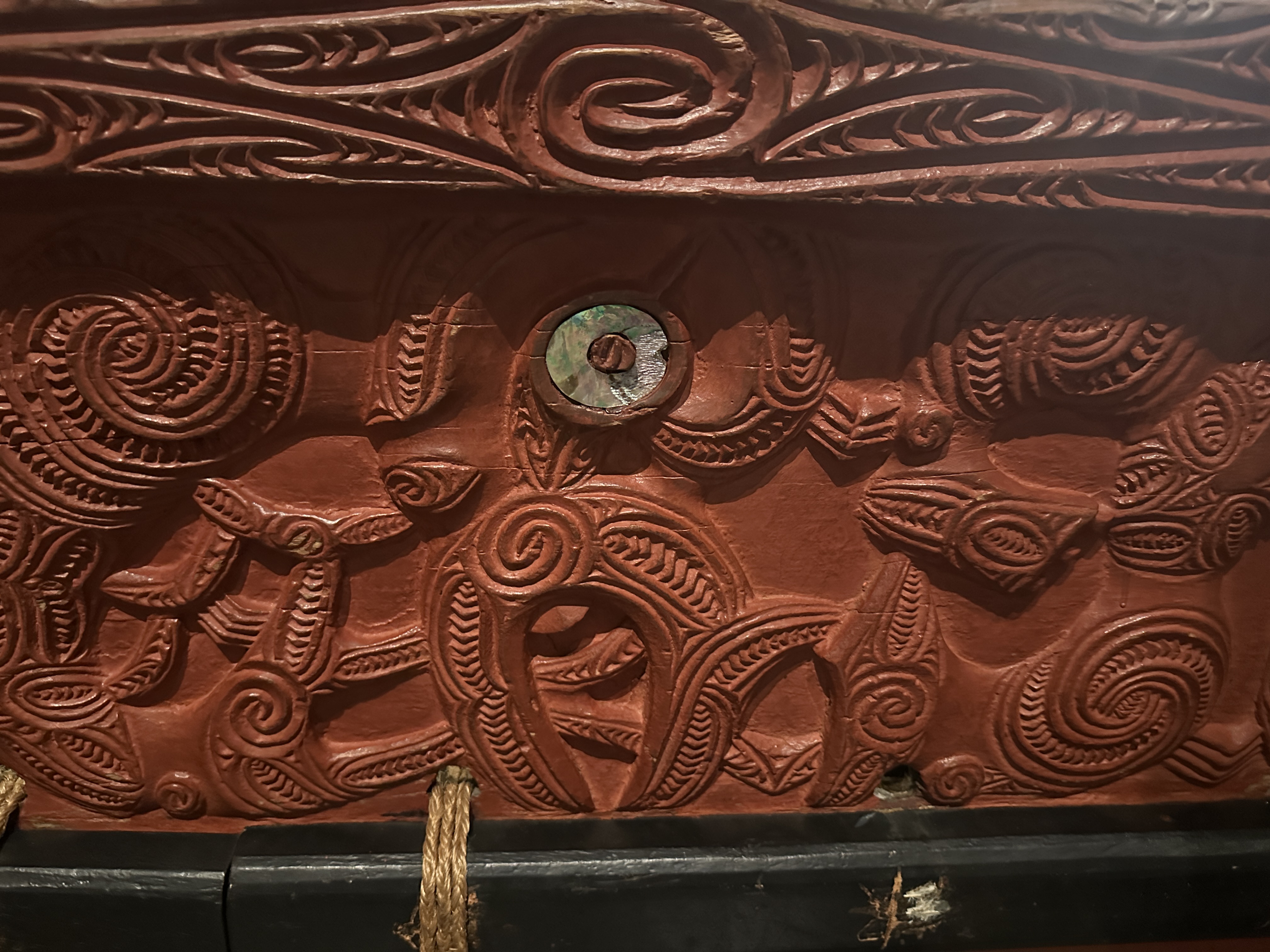 The Museum also features an extensive display of Māori artifacts, including a war canoe capable of holding 100 warriors, an intricately carved storehouse, and a meeting house.