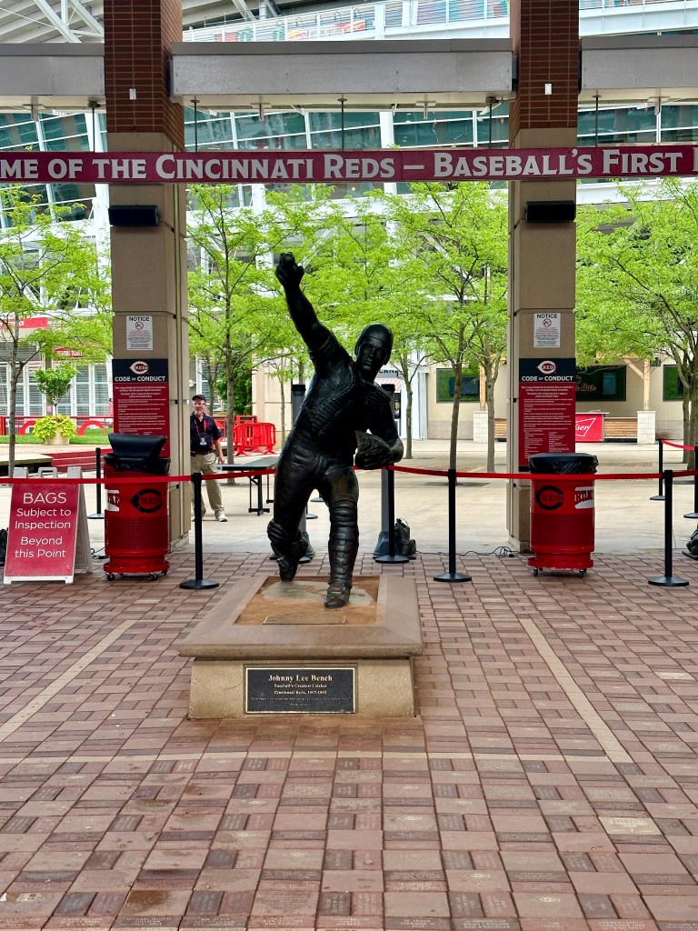 The Reds are the oldest continuously operating baseball franchise in America, and their stadium honors this distinction with an on-site hall of fame and museum and statues of past greats (Bench, Perez, Rose, etc.).
