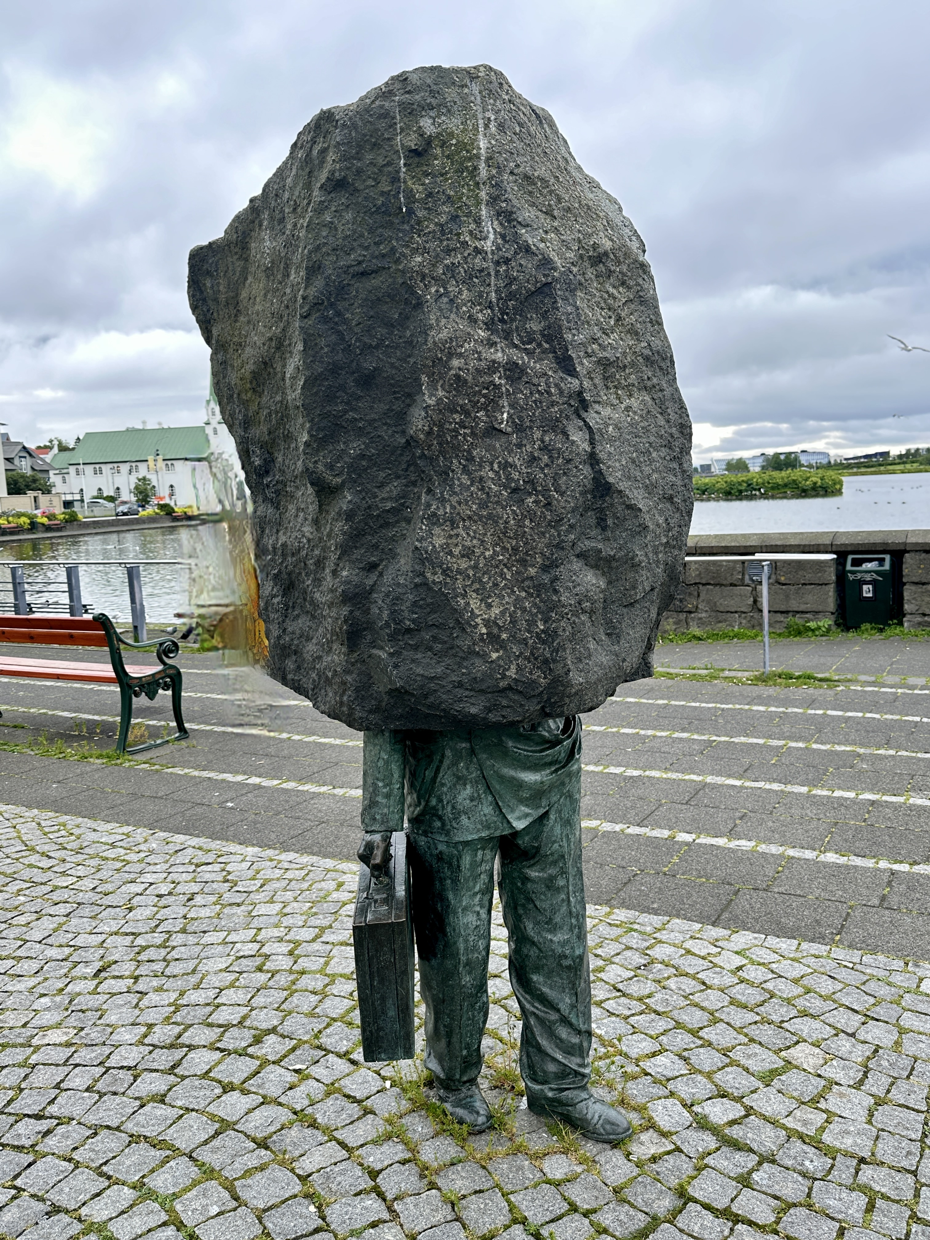 Anyway, having vigorously exercised my credit card, I got to my hotel (the Reykjavik Grand) a bit before 8 a.m., dropped my bags, ate breakfast (the buffet gets a B-), and headed out into the cold mist. Yes, it’s summer, but that’s what summer means in this part of Iceland. So far this year the high temperature here in the capital has been 17 degrees C. (around 60 degrees F.), and the chance of seeing the sun is roughly the same as the odds of the Nats making the playoffs this year.