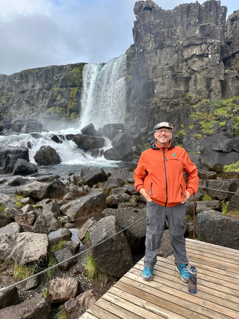 Ten minutes or so down the path, there’s a side trail that heads uphill for 150 meters to the Öxaráfoss waterfall. It’s a pretty place, but far from Iceland’s most impressive cascades (one of which we visited later in the day).