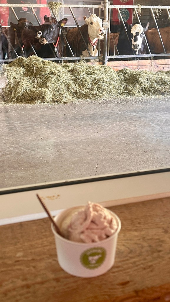 I’ll move on now from tectonic plates to salad plates. After a quick stop for ice cream at a dairy farm (as you know, it’s best to eat dessert before a meal to make sure you have enough room for it), we had a terrific lunch at Frieðheimar, a tomato farm with a simple, beautiful winery/restaurant.