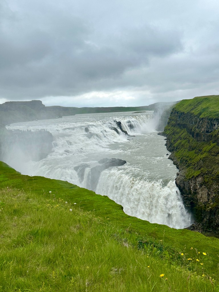 “Gull” means gold in Icelandic. Apparently, on sunny days the falls take on a golden tone. I have it on good authority that the sun occasionally does shine in Iceland, but today was not one of those instances.