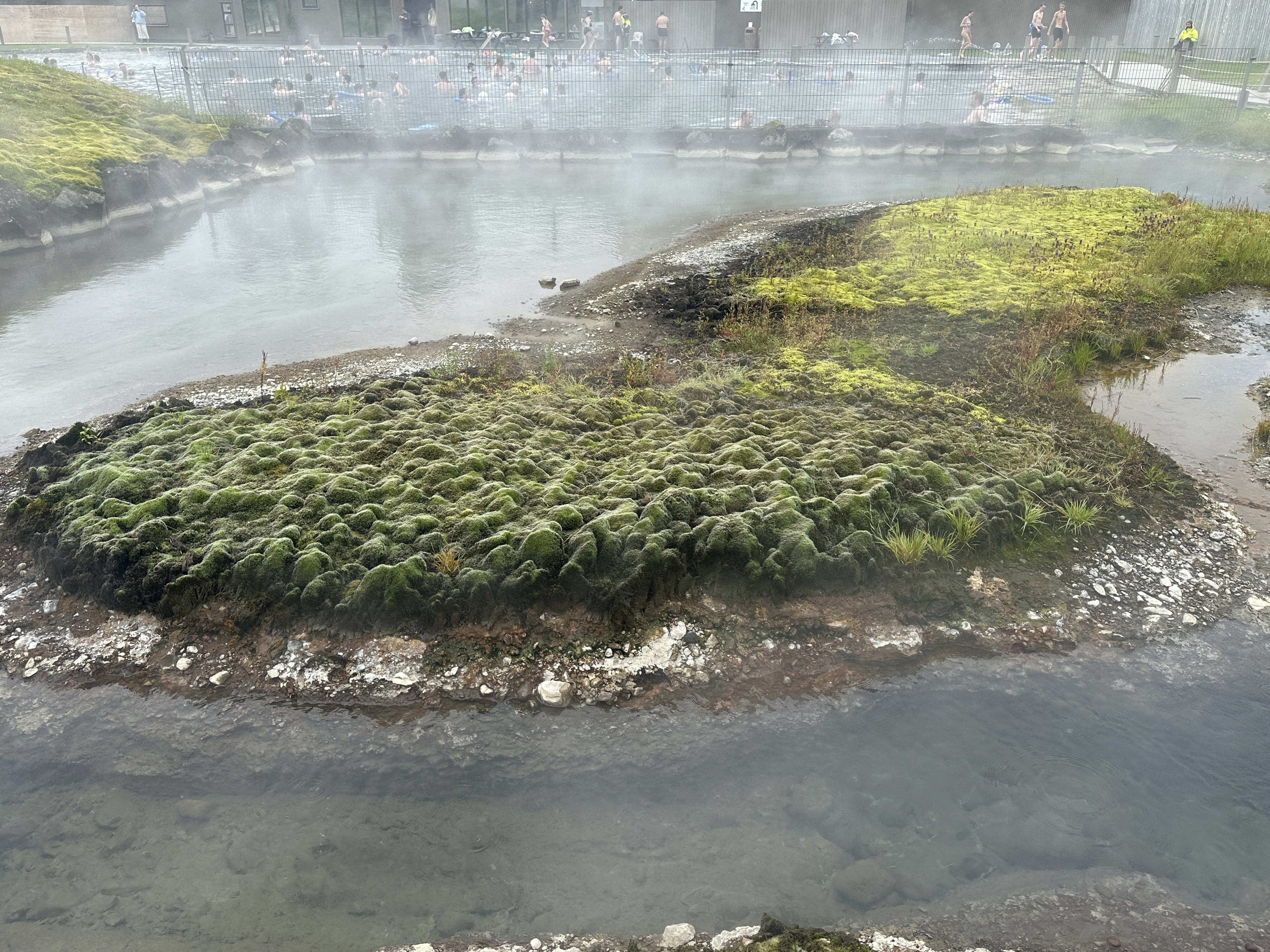 Our final stop was the “Secret Lagoon,” an aquatic expanse the size of a large swimming pool heated to around 100 degrees F. by neighboring hot springs. I didn’t go in, but the rest of our group emerged happy and relaxed.