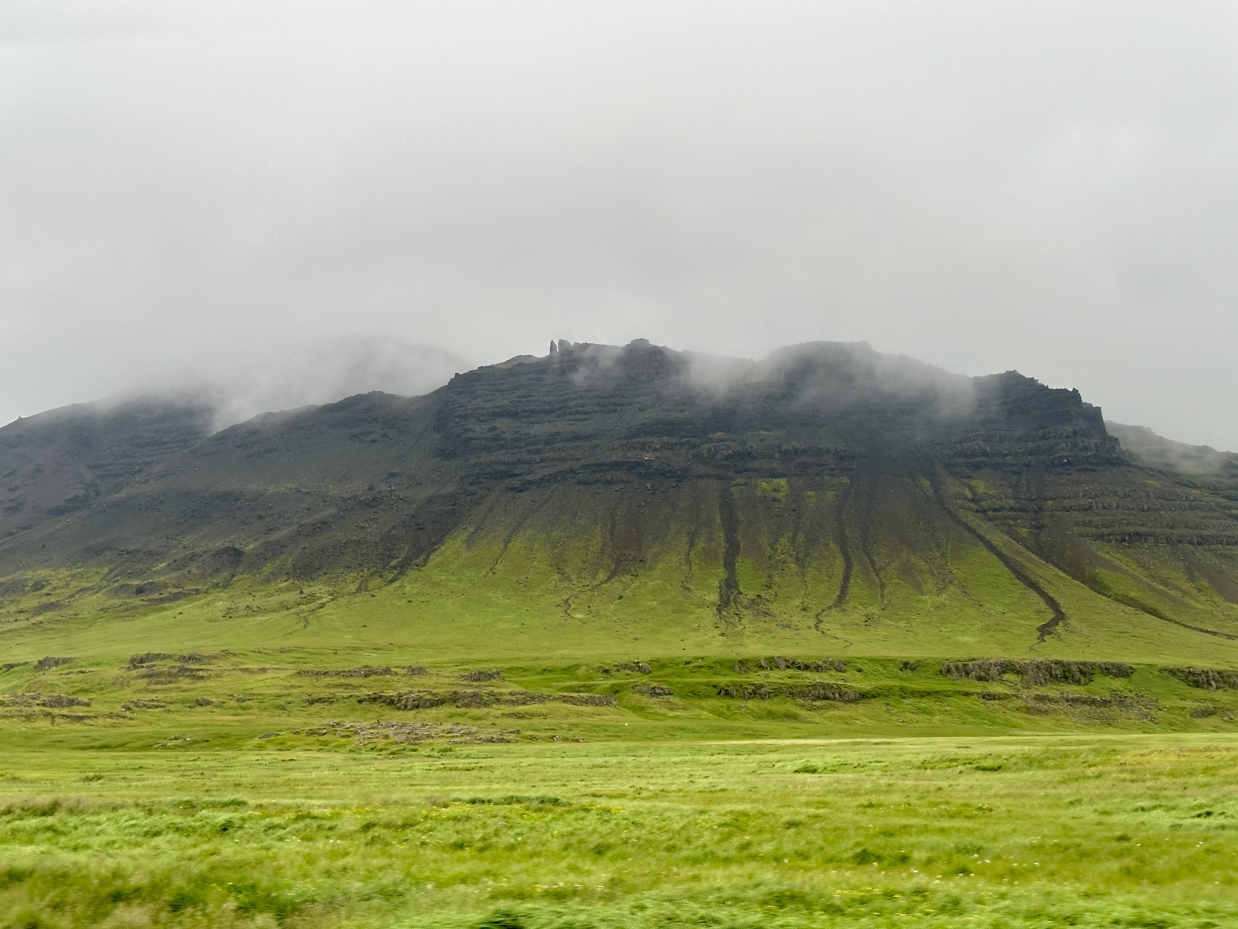 If you read this blog regularly, you know that I rarely pass up the opportunity to make an obscure musical reference. Today’s comes courtesy of Donovan, the great Scottish singer-songwriter known for trippy, mystical lyrics. Specifically, his classic hit “There Is a Mountain” describes the morning perfectly: “First there is a mountain, then there is no mountain then there is.” He probably wasn’t talking about Iceland, but the lyrics suit this morning’s weather, which involved blankets of low clouds that sometimes lifted a bit and then a minute later descended.