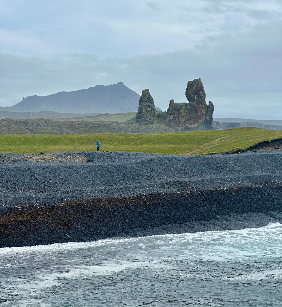 Continuing into the national park, we stopped near the Malarrif lighthouse, which overlooks dynamically crashing surf. Not far away, two rock pillars guard the coast; early settlers considered these the petrified remains of a couple of trolls.